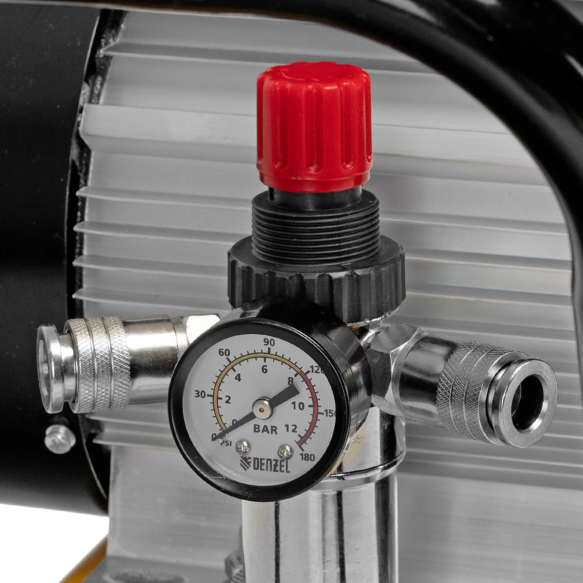 - Удобный контроль давления в ресивере и пневмомагистрали — компрессор оснащен двумя механическими манометрами.