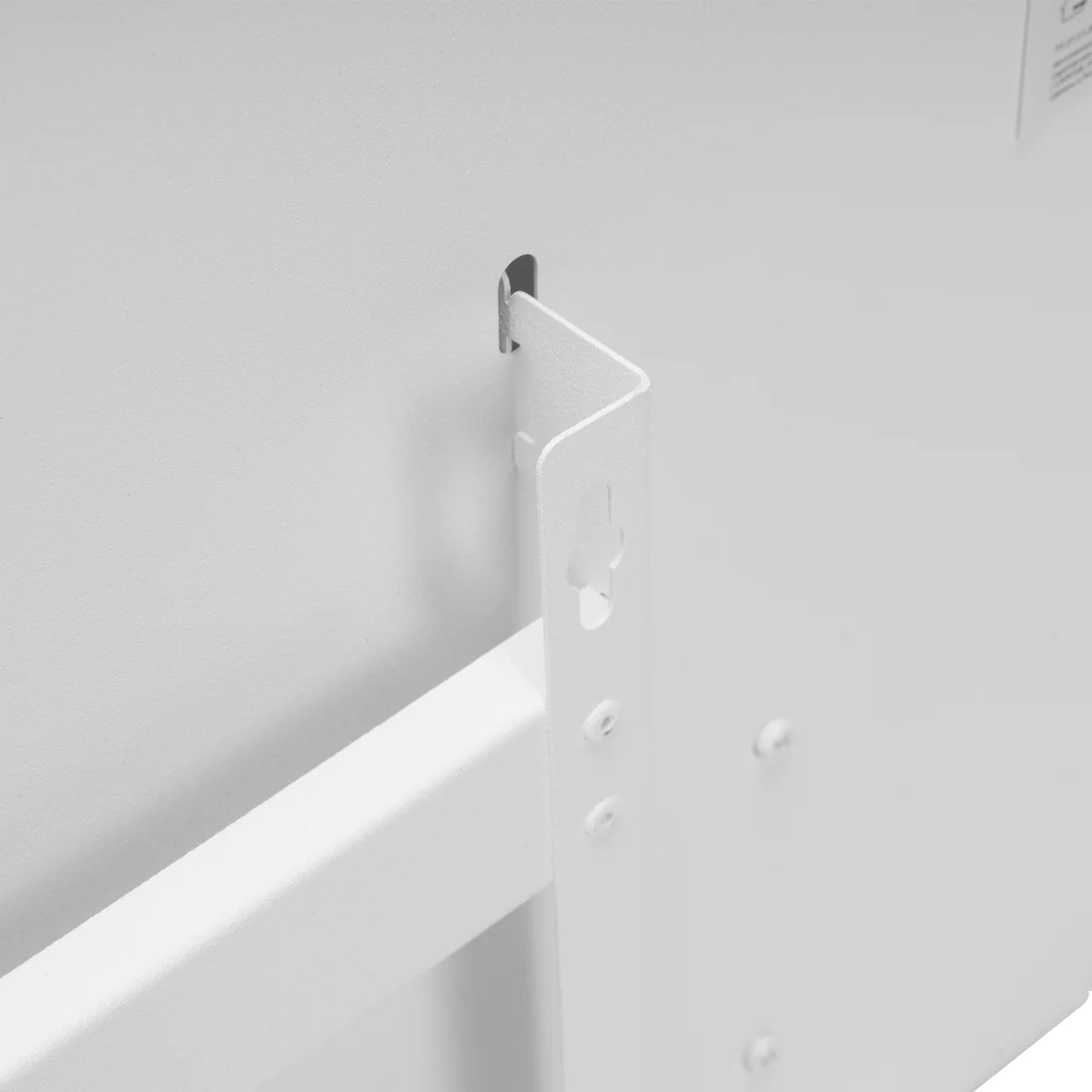 - Напольная или настенная установка — в комплект поставки включена цельнометаллическая крепежная рамка для стены, а также стальные ножки с колесами.