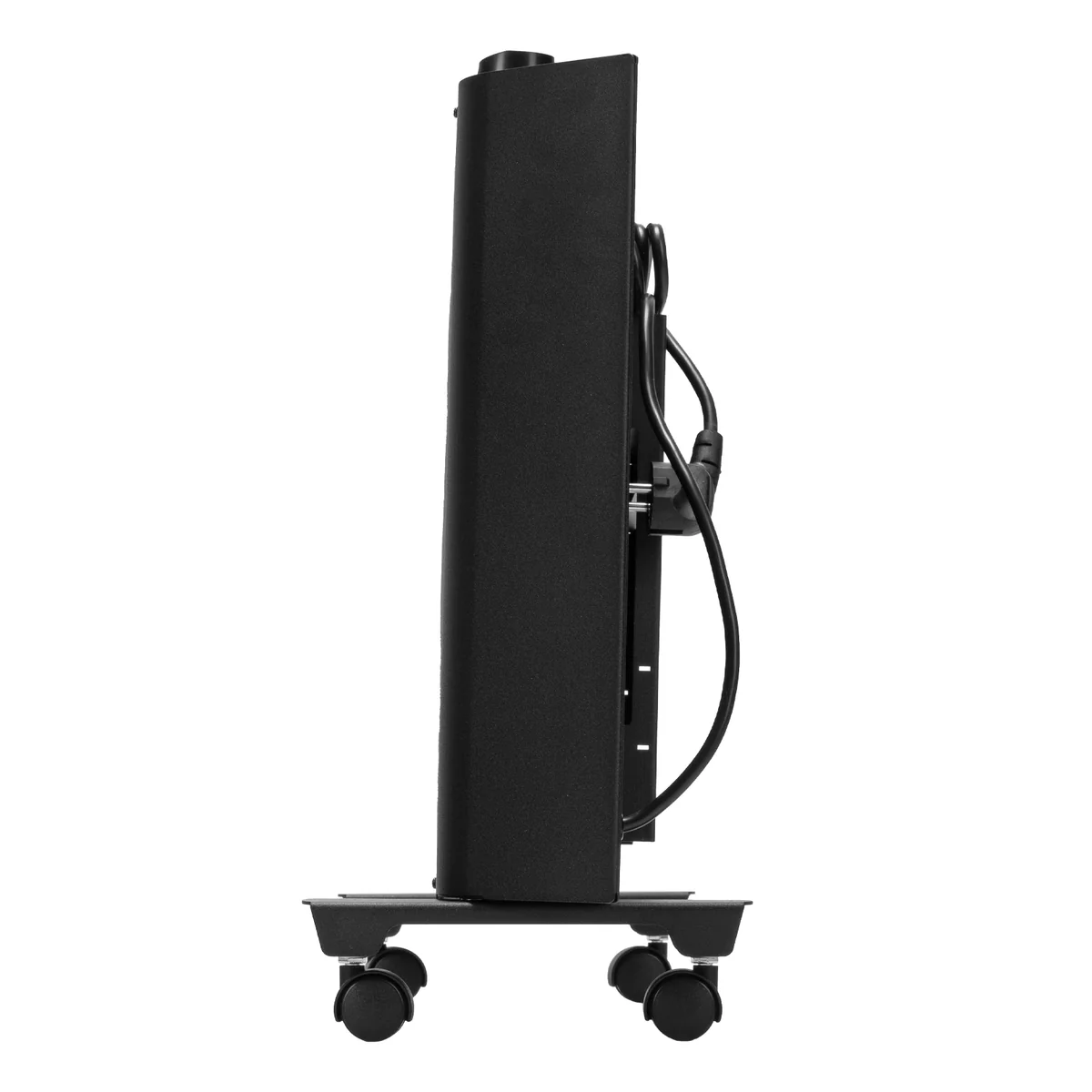 - Напольная или настенная установка — в комплект поставки включена цельнометаллическая крепежная рамка для стены, а также стальные ножки с колесами.