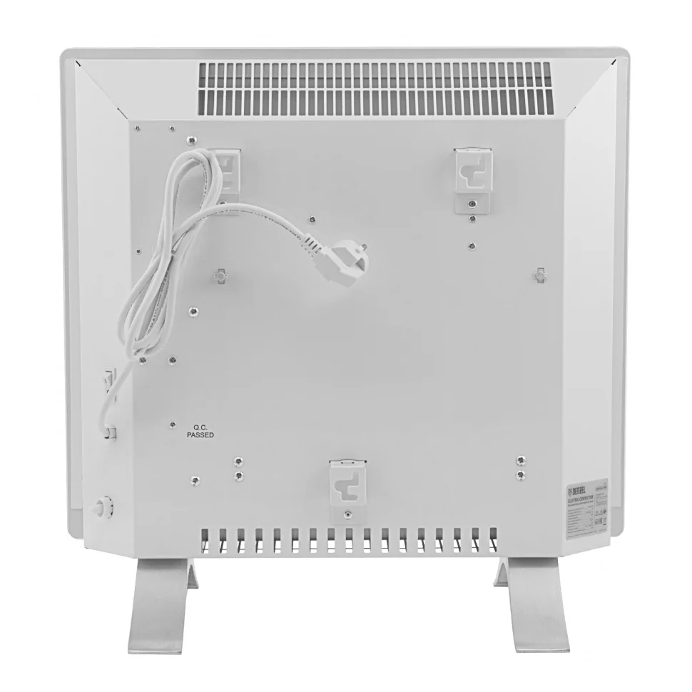 Электрический конвектор Denzel OptiPrime-1000 98121 максимальной мощностью 1000 Вт, с тачскрином, цифровым термостатом и функцией подключения к Wi-Fi, рассчитан на обогрев квартиры, дачи, загородного дома, офиса, а также пригодится в производственных, бытовых и общественных помещениях. Рекомендуемая площадь обогрева — 15 кв.м. Две мощности обогрева 500 и 1000 Вт позволяют поддерживать температуру в отапливаемой комнате и полностью прогревать холодные помещения.Устройство оснащено Х-образным нагревательным элементом — самым долговечным среди аналогов, обеспечивающим максимально равномерный прогрев помещения. Конвектор не сушит воздух, не сжигает пыль и исключает появление неприятного запаха.ПреимуществаПодключение к Wi-Fi и системе «Умный дом» — установите приложение Smart Life на смартфон и с максимальным комфортом адаптируйте работу конвектора под свои потребности (приложение доступно в AppStore и Google Play).Сенсорная панель управления — тачскрин позволяет легким нажатием менять режимы работы, а цифровой LED-дисплей отображает всю необходимую информацию.Пульт ДУ в комплекте — для управления устройством не придется постоянно подходить к нему.Цифровой термостат — устройство плавно регулирует температуру, поддерживая заданные параметры.Работа по расписанию — программируемый недельный таймер позволяет выставить день и время, когда конвектор должен включиться или выключиться.Защита от детей — управляющие кнопки можно заблокировать, и маленькие домочадцы не смогут изменить заданные взрослым пользователем настройки.Безопасная эксплуатация — конвектор автоматически выключается при риске перегрева и в случае опрокидывания.Премиальный дизайн — лицевая сенсорная панель из закаленного стекла прослужит долгие годы и впишется в любой интерьер — от классического до ультрасовременного.Возможность использования в ванных комнатах — нагревательный элемент надежно защищен от попадания влаги, что позволяет устанавливать устройство в санузлах.Бесшумная работа — обогрев даже на полной мощности не доставит дискомфорта.Напольная/настенная установка — колесные опоры, кронштейн для крепления к стене и комплект крепежа прилагаются к конвектору.Переключение между градусами Фаренгейта и Цельсия — такое решение позволяет с удобством использовать конвектор пользователям, привыкшим к разным шкалам.Высокая энергоэффективность — конвектор экономно расходует электроэнергию, а отключение при обнаружении открытого окна позволяет дополнительно сэкономить ее потребление.Гарантия 3 года — качество и надежность конвектора подтверждены производителем.