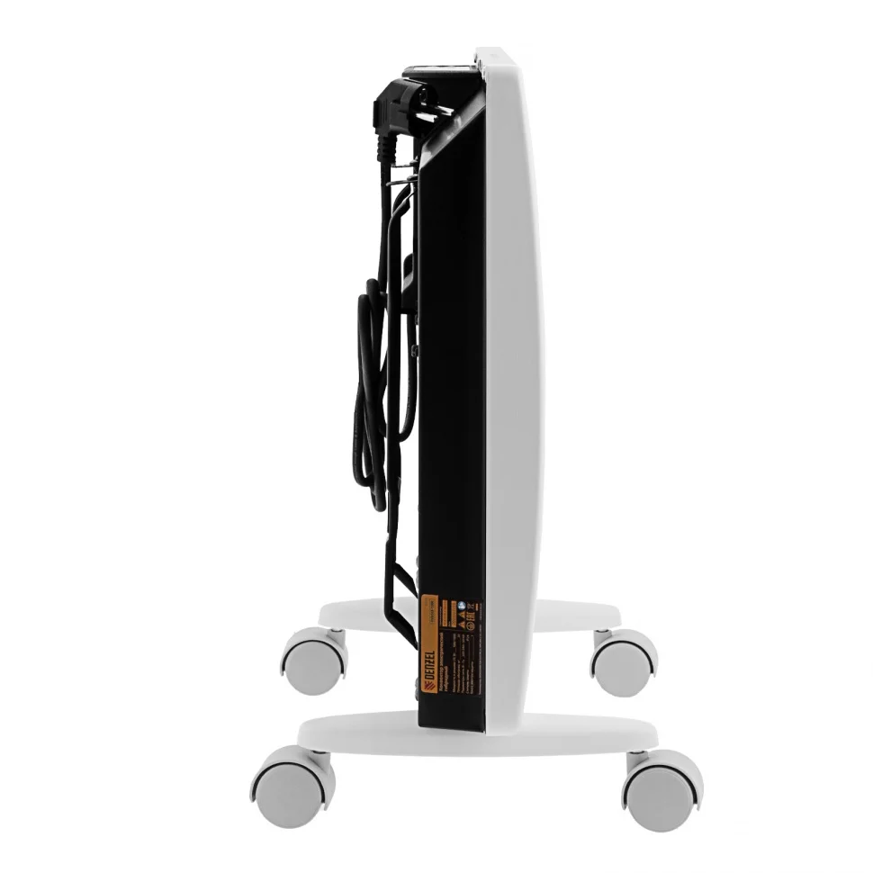 Гибридный электрический конвектор Denzel HybridX-1000 98118 с X-образным инфракрасным нагревательным элементом, LED-дисплеем и цифровым термостатом рассчитан на обогрев закрытых помещений площадью до 20 кв.м. Оптимален для использования в квартирах, на дачах, в офисах, а также в бытовых, общественных и производственных помещениях. Регулировка мощности 500/1000 Вт позволяет выставить желаемую скорость обогрева помещения. Устройство поддерживает механический и автоматический режимы, что позволяет максимально точно настроить его работу под свои потребности.ПреимуществаВысокая энергоэффективность — гибридный нагревательный элемент излучает инфракрасное тепло и одновременно обеспечивает конвекцию воздуха, что позволяет прогревать помещение заметно быстрее при тех же затратах энергии.Отсутствие неприятного запаха — конвектор не сушит воздух и не сжигает пыль.Двойная защита — специальные датчики отключают конвектор в случае перегрева и опрокидывания, что делает его применение максимально безопасным.Цифровой термостат — просто запрограммируйте необходимую температуру и она будет поддерживаться автоматически.Интуитивно понятная навигация — электронная панель управления с ярким информативным дисплеем отображает все необходимые параметры работы и позволяет быстро переключаться на нужный режим.24-часовой таймер — в механическом режиме можно установить желаемое время включения, что позволит приходить после работы в теплую квартиру и не замерзать ночью.Недельная программа таймера — в автоматическом режиме пользователь может выбрать день и время, когда конвектор включится (на каждый день предусмотрено по 4 таймера работы).Функция запоминания — после отключения в памяти устройства сохраняются последние выставленные таймеры и температура.Датчик открытого окна — конвектор автоматически отключается при поступлении холодного воздуха и понижении температуры в помещении, что позволяет избежать потери электроэнергии.Защита от детей — панель управления устройством можно заблокировать, тем самым обеспечив безопасную работу в квартире, где есть маленькие домочадцы.Долговечность — срок службы нагревательного элемента составляет 25 лет.Бесшумная работа — конвектор можно ставить в зонах отдыха и включать на время сна.Напольная/настенная установка — быстросъемные колесные опоры, кронштейн для крепления к стене и необходимый крепеж входят в комплект поставки.Возможность использования в ванных комнатах — нагревательный элемент надежно защищен от попадания влаги, что позволяет устанавливать устройство в санузлах.Гарантия 3 года — качество и надежность конвектора подтверждены производителем.