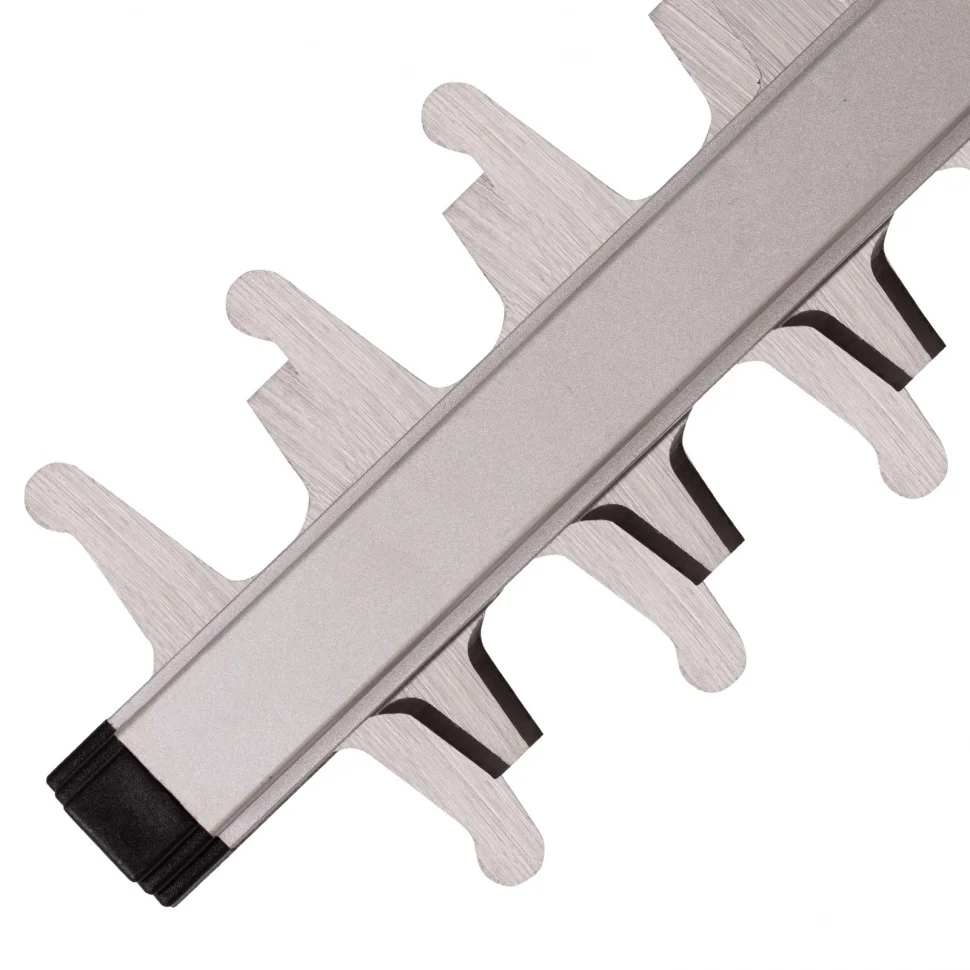 Аккумуляторный кусторез Denzel RBC510-36 59410 с двумя Li-Ion батареями емкостью 4 Ач и суммарным напряжением 36 В, с поворотной ручкой, используется для стрижки кустарников и тонких веток деревьев, подрезания дикой поросли травы. С его помощью можно создать живую изгородь или ландшафтные скульптуры из декоративных растений. Нож длиной 510 мм обеспечивает толщину реза 24 мм.Кусторез не зависит от сети электропитания, поэтому работать с ним можно в самых отдаленных участках сада. Устройство не выделяет вредных выхлопов и работает намного тише в сравнении с бензиновыми аналогами.Преимущества:Удобная работа под разным углом — рукоятку можно развернуть на 90 градусов влево и вправо для боковой подрезки кустарников, а для надежной фиксации предусмотрена кнопка блокировки поворота.Высокий ресурс и надежность — редуктор и кривошипно-шатунный механизм полностью выполнены из металла, поэтому выдерживают повышенные нагрузки.Двойная защита от случайного пуска — блокировка кнопки запуска позволяет избежать получения травм.Безопасность — на корпусе кустореза имеется специальный пластиковый кожух для защиты рук оператора.Виброзащита — благодаря системе гашения колебаний работа кусторезом не вызывает дискомфорт.Неожиданных остановок в работе не случится — LED-индикатор отображает уровень заряда батареи.Универсальность — аккумуляторы 4Ач Li-ion совместимы с любым инструментом 18V Denzel battery system серии IB.Быстрое восстановление работоспособности — в комплект входит зарядное устройство для одновременной зарядки двух аккумуляторов.Удобное хранение и транспортировка — защитный кожух для ножа предохраняет пользователя от случайного контакта с режущей кромкой.Гарантия 3 года — качество кустореза подтверждено производителем.