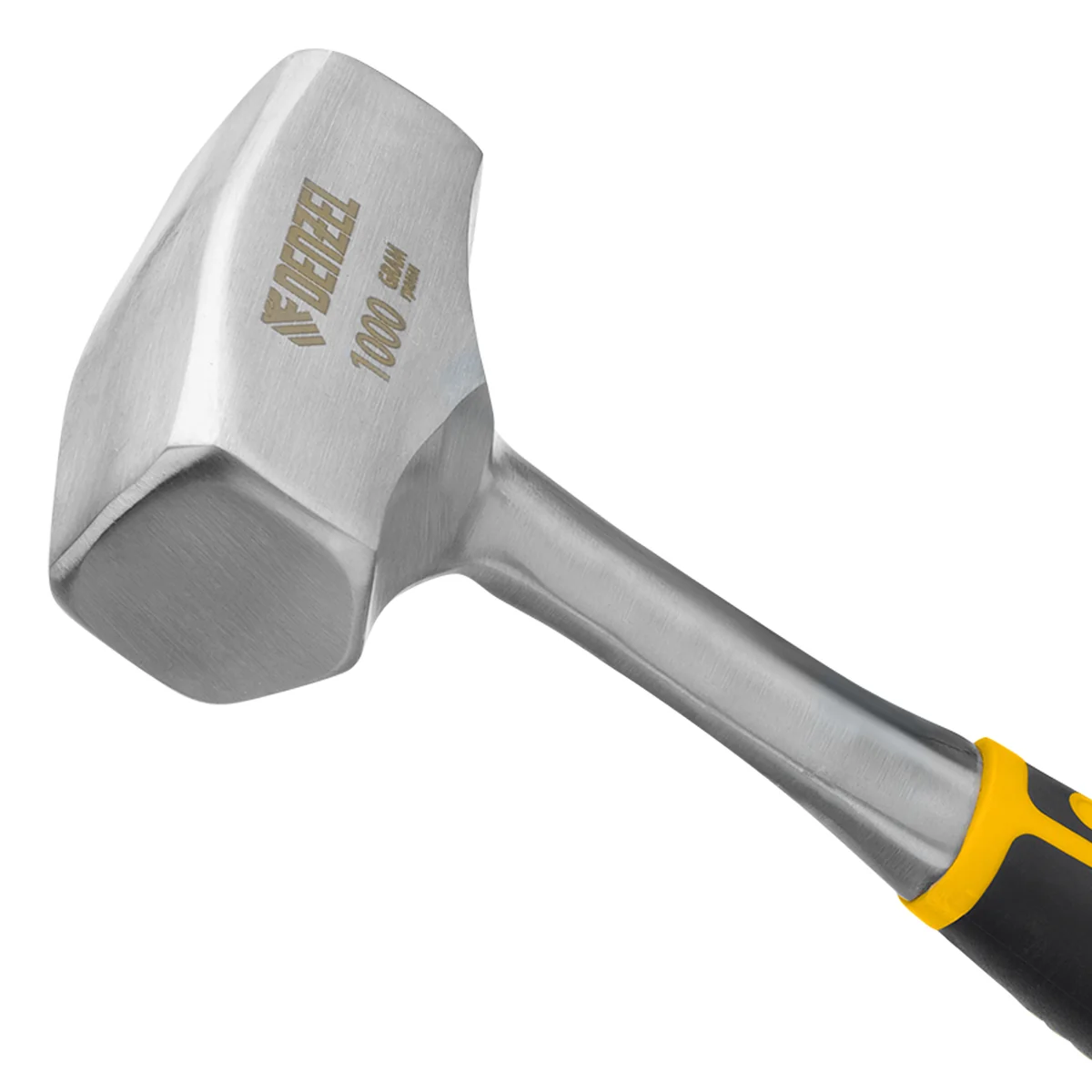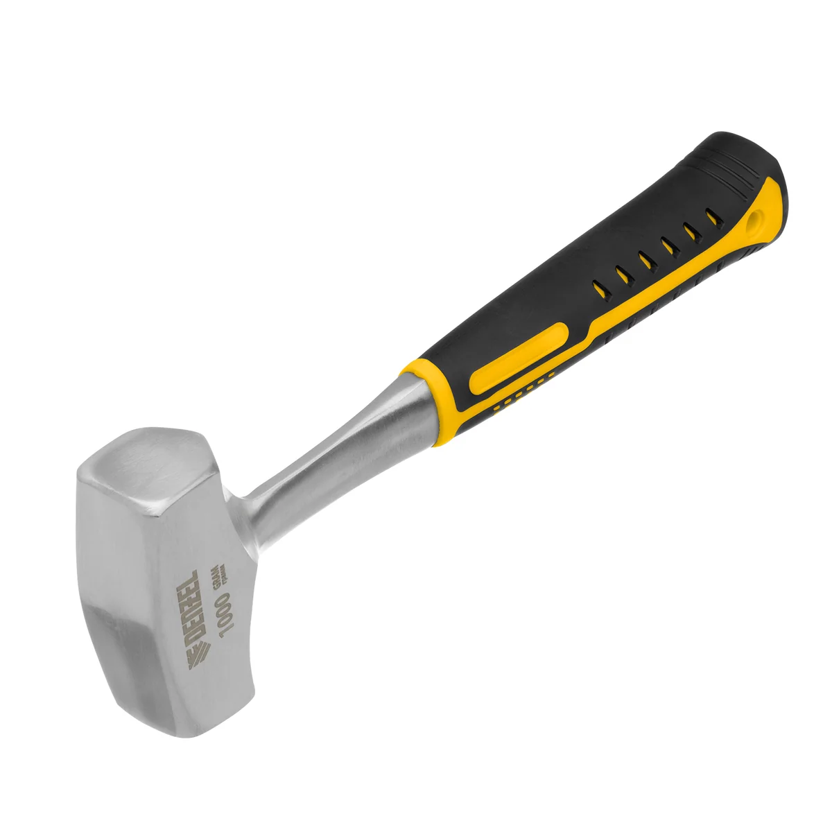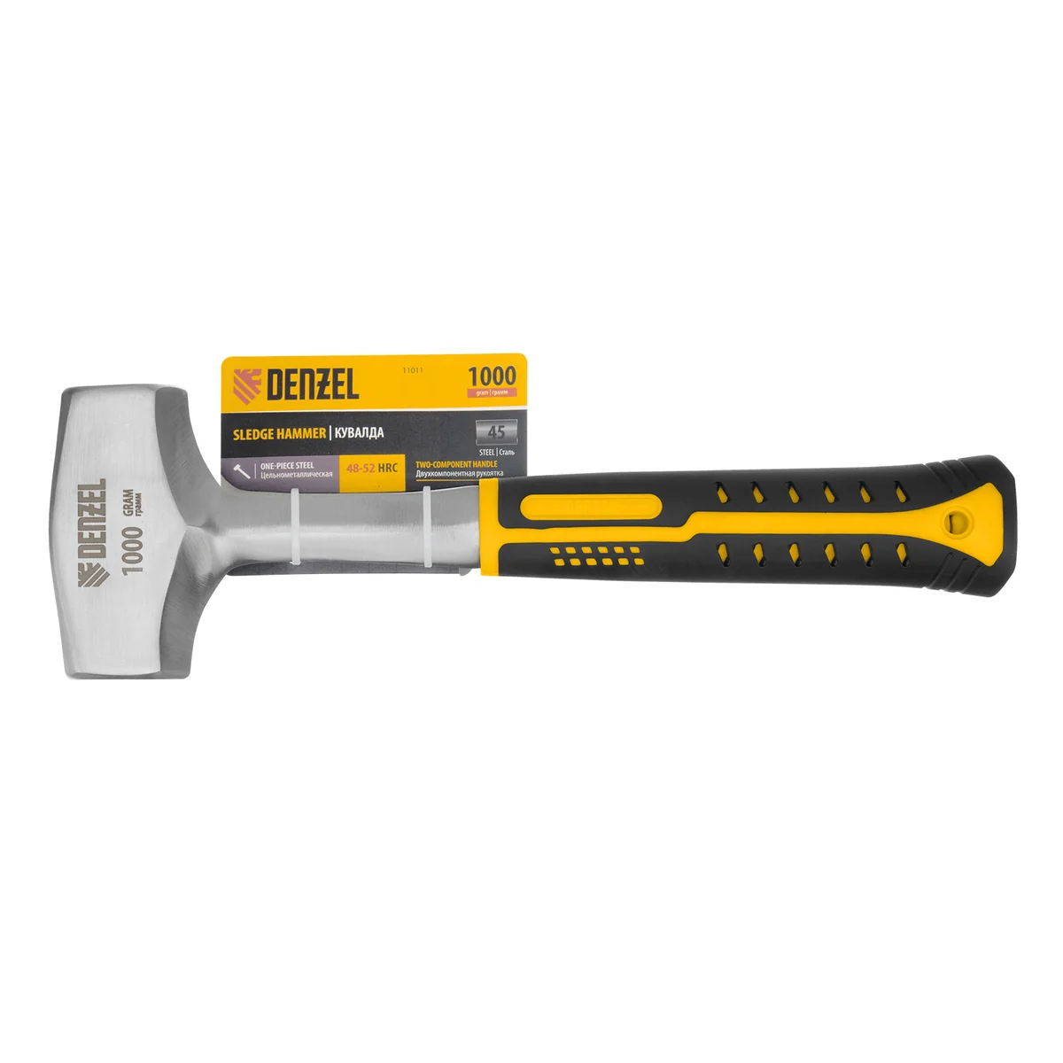 Цельнометаллическая кувалда Denzel 11011 с рабочей частью весом 1 кг и двухкомпонентной рукояткой предназначена для нанесения несильных, но точных ударов. Позволяет забивать большие гвозди, колья, может использоваться для сгибания и придания формы металлическим деталям. Используется для проведения слесарных, строительных и кузовных работ, подойдет также и для бытового применения.Преимущества Оптимальные показатели твердости и прочности — кувалда выполнена из высококачественной среднеуглеродистой стали 45, рабочие части закалены токами высокой частоты до 45-50 HRC, поэтому боек не повреждается и не истирается при ударах о металл. Надежность — цельнометаллический инструмент выдерживает высокие ударные нагрузки без риска поломки. Комфортная работа — двухкомпонентная рукоятка с резиновыми вставками не выскальзывает из рук.