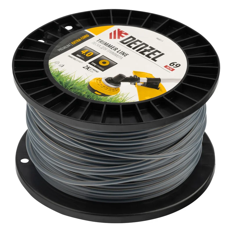 Двухкомпонентная леска для триммера Denzel EXTRA CORD 96810 размером 4,0 мм х 69 м, с круглым сечением, на DIN-катушке, предназначена для работы с мощными бензотриммерами. Используется для скашивания густой травы и растений с толстыми и жесткими стеблями. Будет полезна для ухода за дачным участком или придомовой территорией.ПреимуществаПрочность — леска изготовлена из полиамида PA6 с использованием сырья производства компании BASF — признанного лидера мировой химической промышленности.Высокий ресурс — леска имеет прочный сердечник и эластичный внешний слой, что более чем на 50% увеличивает устойчивость к повреждениям и обрыву.Экономичность — длины 69 м достаточно для выполнения большого объема работ.Удобная упаковка — концы корда закрепляются в отверстиях DIN-катушки, чтобы сохранить целостность намотки во время хранения и транспортировки.
