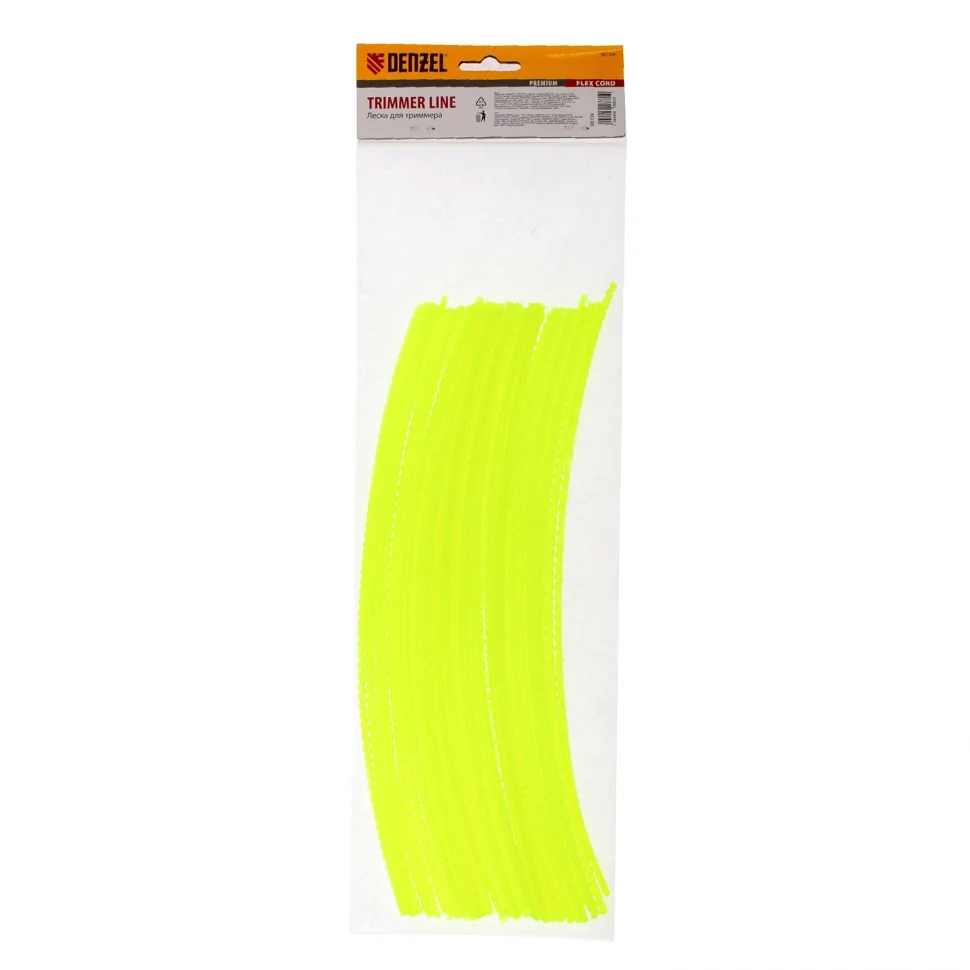 Нарезанная леска для триммера Denzel FLEX CORD 96104 с сечением «зубчатый квадрат», толщиной 3 мм и длиной 30 см, поставляется упаковками по 50 шт. и является сменным режущим элементом для триммерной головки. Применяется для срезания зарослей густой травы и сорняков с толстыми стеблями на участках большой площади. Леска устанавливается на бензотриммеры.ПреимуществаВысокая эффективность — леска с агрессивным сечением «зубчатый квадрат» быстро и качественно срезает траву.Прочность и долговечность — леска изготовлена из полиамида РА6 с добавлением полиамида BASF.Быстрая заправка — корд поставляется в нарезанном виде (отрезки по 30 см), что ускоряет ее установку в триммерную катушку.