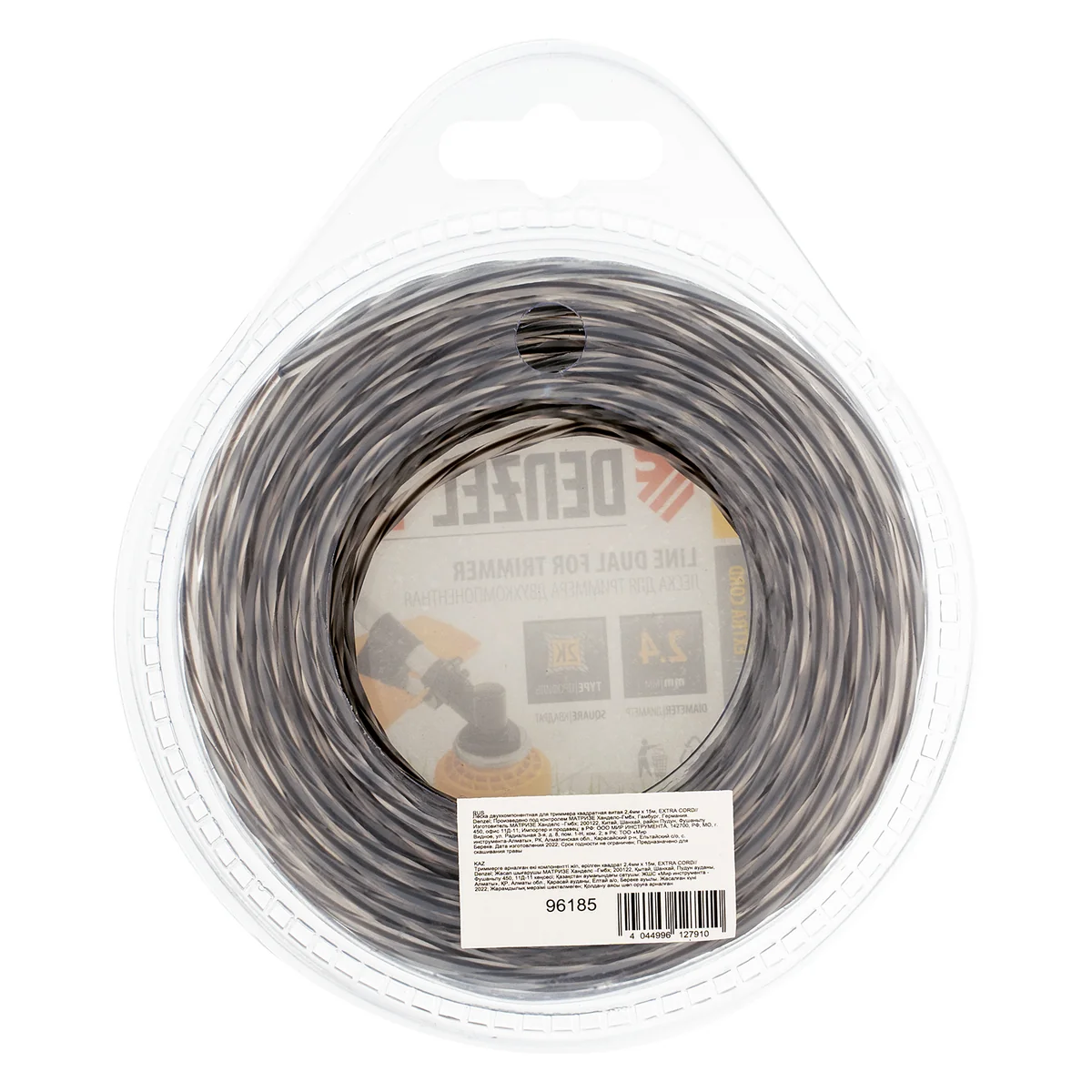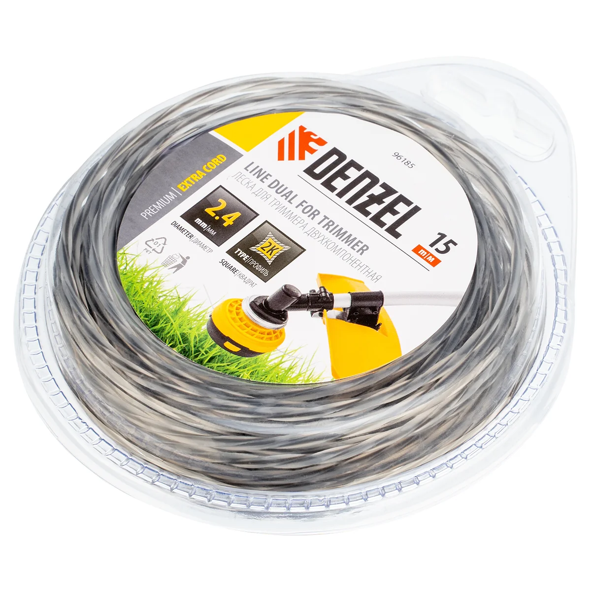 Двухкомпонентная леска Denzel EXTRA CORD 2,4 мм х 15 м предназначена для триммеров с электрическим и бензиновым двигателем мощностью до 1,5 кВт. Она подходит как для поддержания красоты газона, так и для срезания высокой сорной травы и зарослей молодого кустарника. Благодаря высокопрочной сердцевине и гибкой внешней оболочке может использоваться на сложных участках.Преимущества:Леска с квадратным витым сечением и диаметром 2,4 мм не рвет растительность при скашивании, поэтому подстриженная трава не желтеет.Корд отличается высокой эффективностью скашивания, что защищает двигатель триммера от перегрузки.Изготовленная из двух компонентов (полиамид РА6 и полиамид BASF) леска обладает более высокой прочностью по сравнению с однокомпонентными аналогами.Длины 15 м хватит на 2-3 месяца при нерегулярном использовании триммера.Корд поставляется в блистере — его удобно извлекать, а длительное хранение не приводит к потере эксплуатационных свойств.
