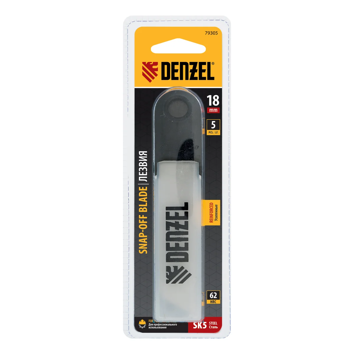 Усиленные лезвия Denzel 79305 шириной 18 мм, изготовленные из стали SK5 толщиной 0,6 мм, 5 шт. в упаковке, — сменные рабочие элементы для монтажных ножей соответствующего типоразмера. Подходят для разрезания твердых материалов, линолеума, пластика, гипсокартона, а также картона, пленки, обоев. Обеспечивают легкий рез. Отличаются повышенной прочностью и долговечностью по сравнению с аналогами других торговых марок. Лезвия остро заточены и хорошо гнутся, могут применяться для проведения строительных и отделочных работ, а также в бытовых целях.