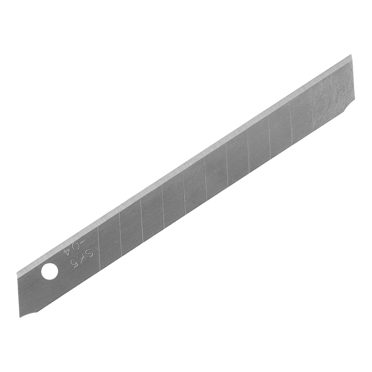 Лезвия Denzel 79300 шириной 9 мм, изготовленные из стали SK5 толщиной 0,4 мм, 10 шт. в упаковке, — сменные рабочие элементы для монтажных ножей соответствующего типоразмера. Подходят для разрезания картона, линолеума, пленки, обоев, обеспечивают легкий рез. Отличаются повышенной прочностью и долговечностью по сравнению с аналогами других торговых марок. Лезвия остро заточены и хорошо гнутся, могут применяться в бытовых целях, а также во время строительства и ремонта.