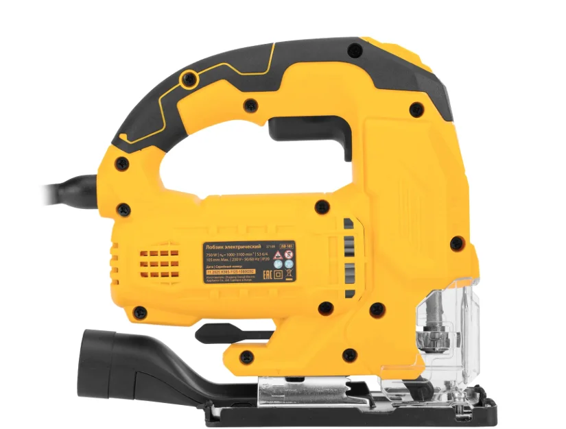 Электрический лобзик Denzel JSD-105 27108 мощностью 750 Вт обеспечивает глубину пропила в древесине до 105 мм, также позволяет выполнять прямой и фигурный рез металлических и пластиковых листовых материалов. Максимальная глубина пропила в стали составляет 10 мм, в цветном металле — 20 мм. Частота хода пилки составляет 1000-3100 ход/мин, маятниковый ход повышает удобство обработки древесины. В конструкции предусмотрен патрубок для подключения пылесоса — такое решение позволяет поддерживать чистоту на рабочем месте. Лобзик пригодится для проведения строительных и ремонтных работ, будет полезен в слесарной мастерской и в быту.