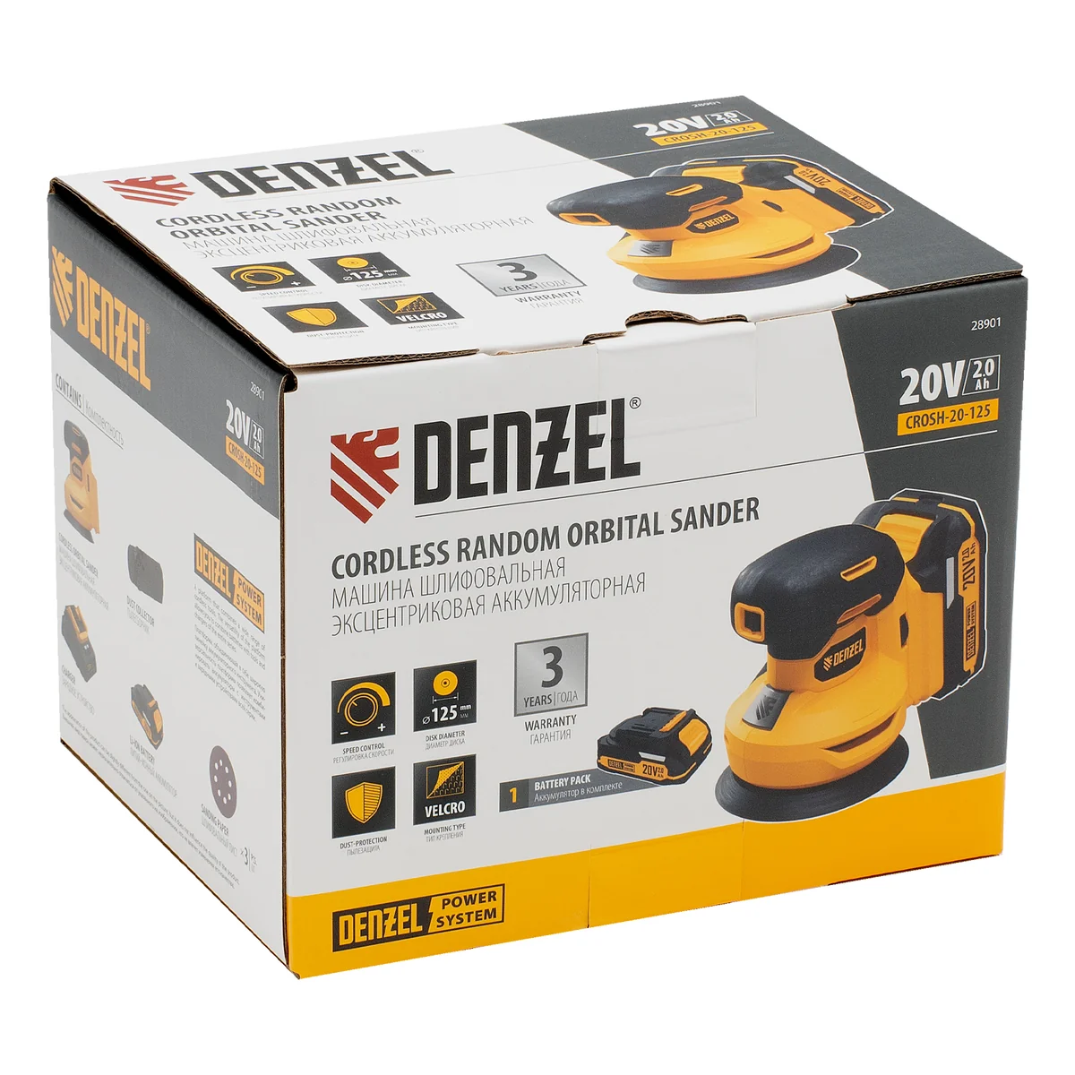 Машина шлифовальная эксцентриковая аккумуляторная CROSH-20-125, Li-Ion, 20 В Denzel 28901