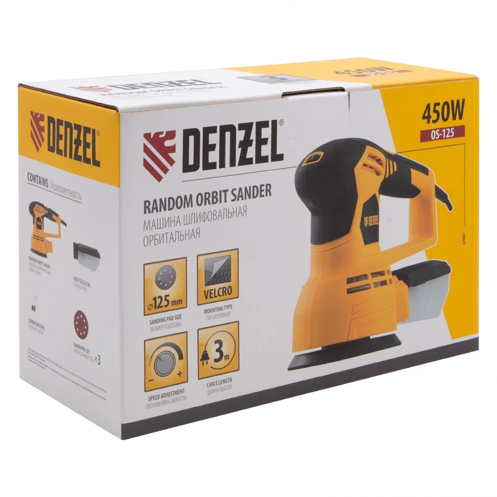 Машина шлифовальная эксцентриковая OS-125, 450 Вт, 6000-12000 об/мин Denzel 27601