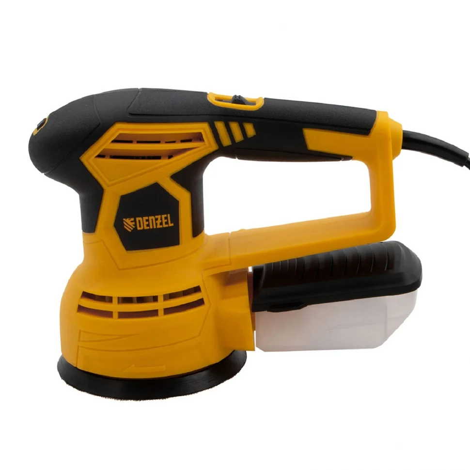 - Универсальный пылесборник — контейнер подходит для всех моделей шлифовальных машин Denzel.