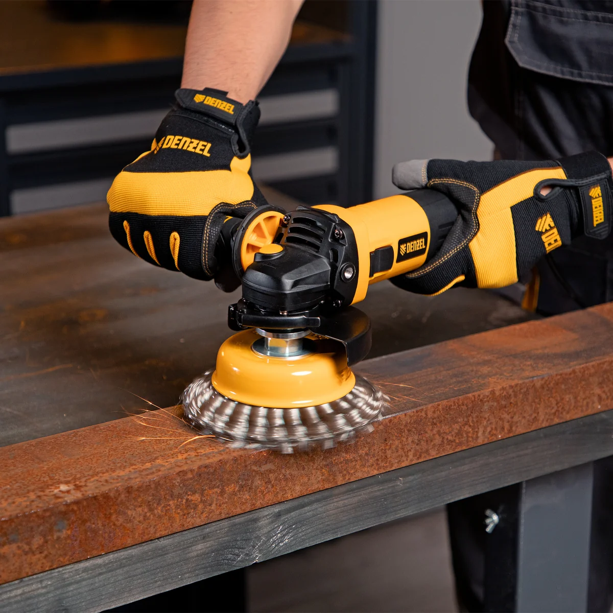 Угловая шлифовальная машина Denzel AG115-750 26901 мощностью 750 Вт совместима с оснасткой максимальным диаметром 115 мм, поддерживает частоту вращения шпинделя 11000 об/мин, благодаря чему эффективно справляется с обработкой и зачисткой поверхностей, а также резкой, шлифовкой металла толщиной до 30 мм и камня. Пригодится дома, в гараже и на даче.