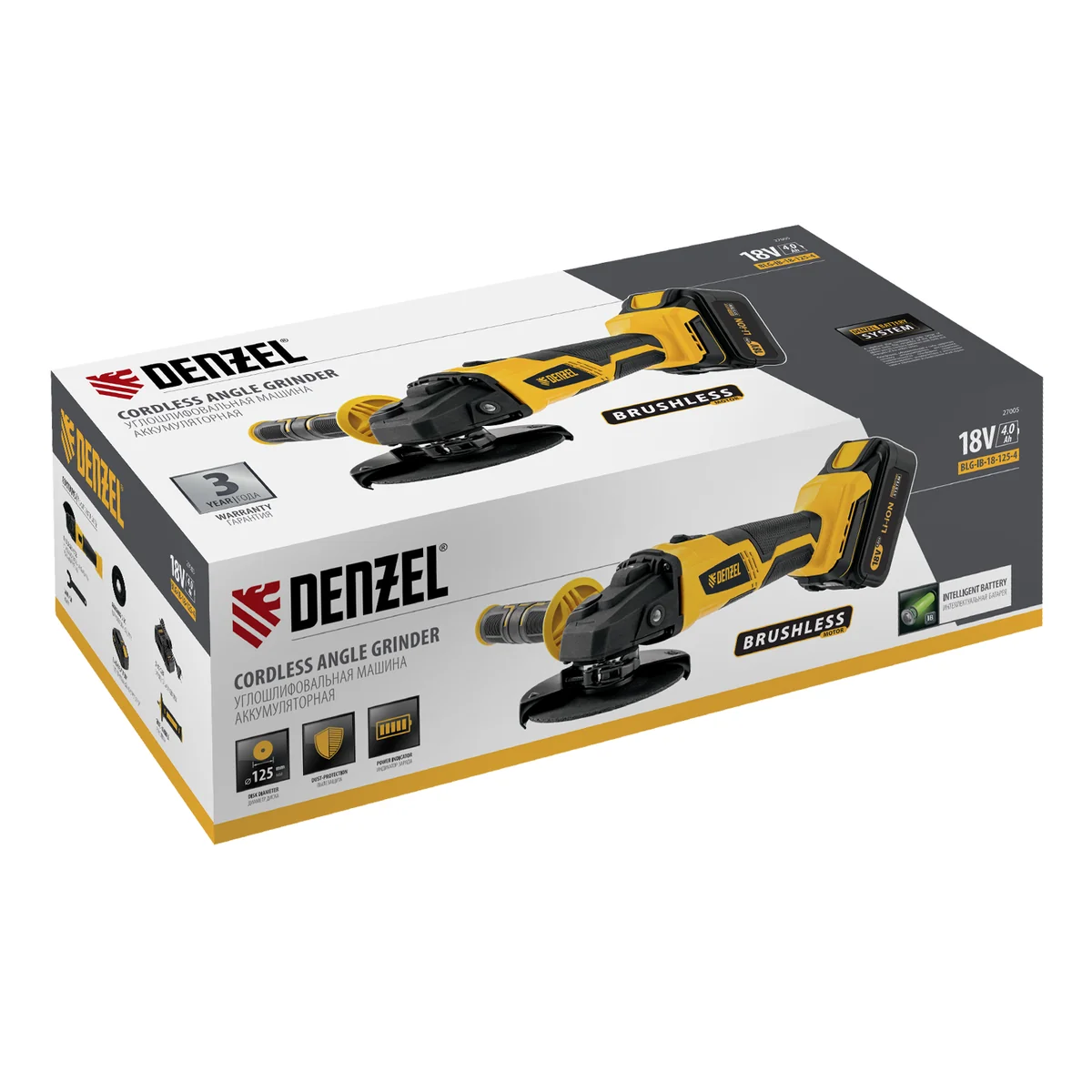Машина углошлифовальная аккумуляторная бесщет. BLG-IB-18-125-4, Li-ion, 18 В Denzel 27005