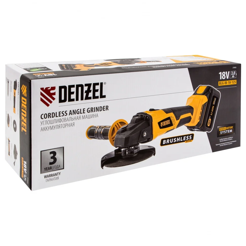 Машина углошлифовальная аккумуляторная BLG-IB-18-125, бесщеточная BLG-IB-18-125, Li-ion, 18 В Denzel 27003