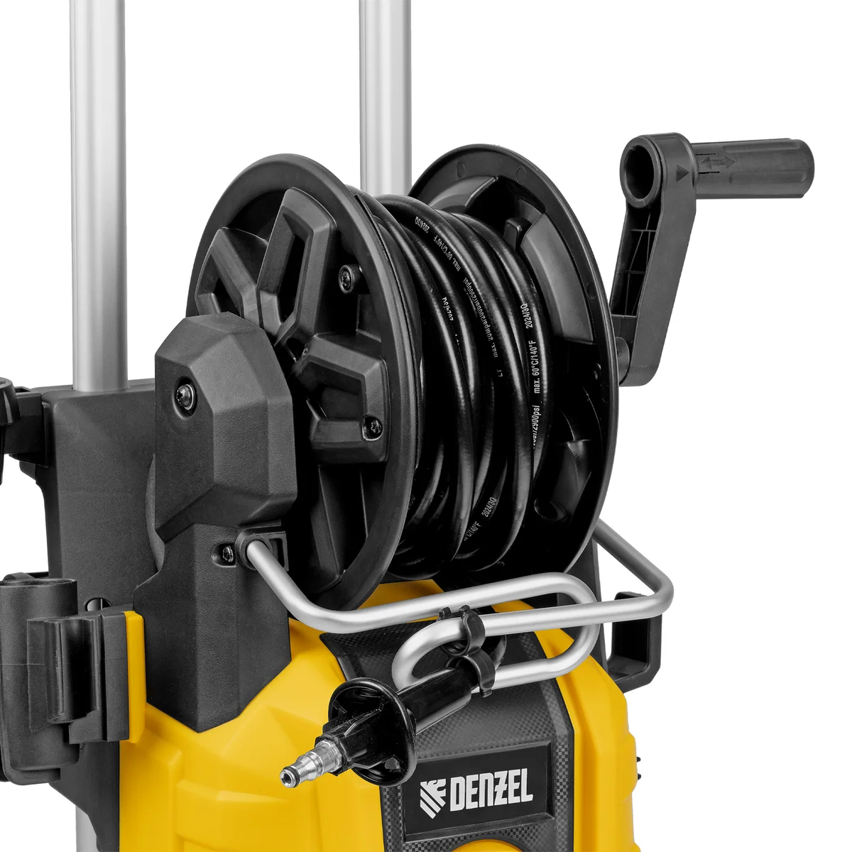 - Удобное использование — функциональный барабан подключен к магистрали высокого давления, поэтому вы можете разматывать и убирать шланг на барабан, не отсоединяя его от мойки.
