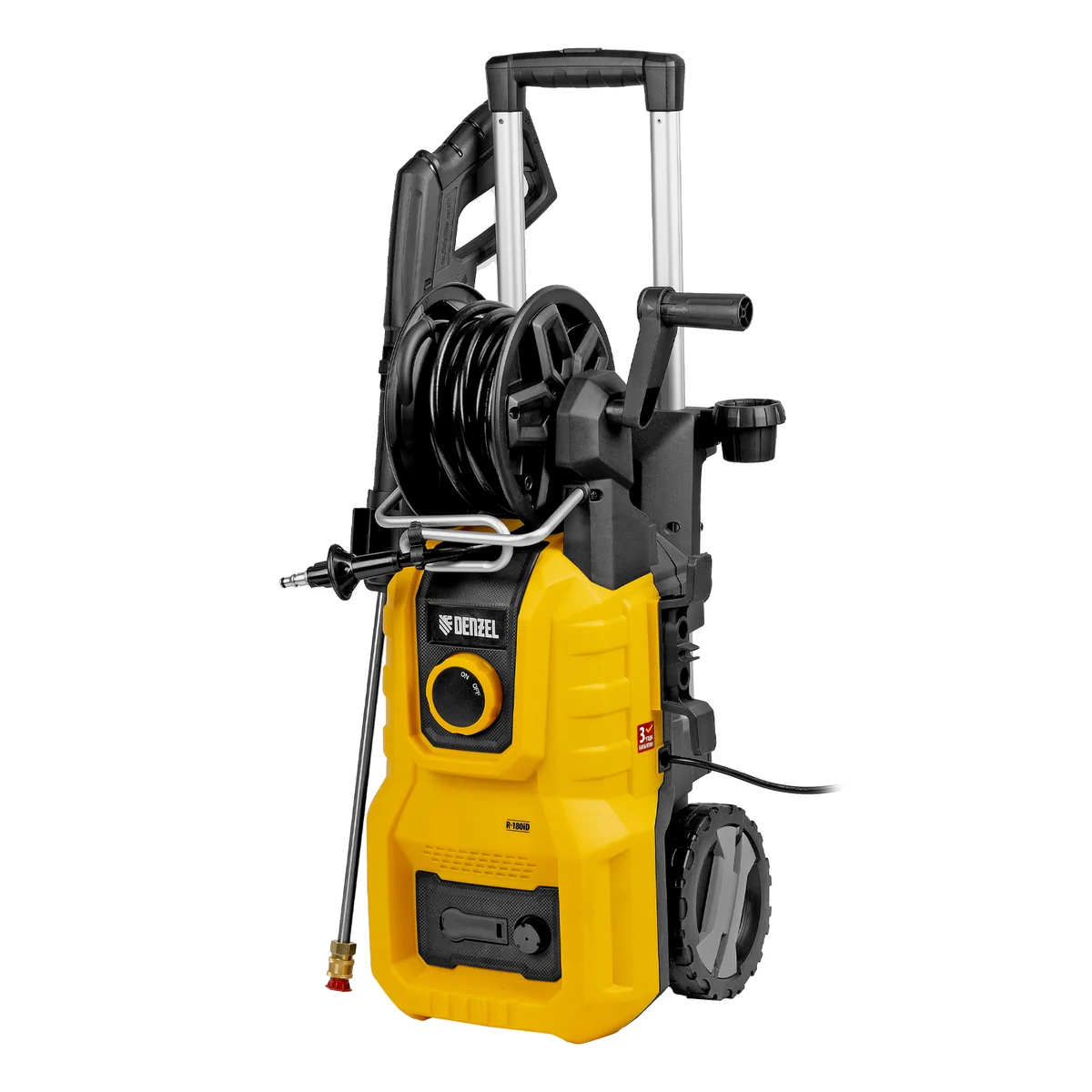 Моечная машина высокого давления Denzel R-180iD 58266 мощностью 2000 Вт, с барабаном и асинхронным двигателем, используется для мытья дорожек, тротуаров, фасадов зданий, автомобилей, окон, садовой мебели и инвентаря. Максимальное давление составляет 180 бар, производительность — 420 л/ч. Мойка подключается к водопроводной сети, а в случае ее отсутствия может забирать воду из любого открытого резервуара, работая в режиме самовсасывания. Надежная алюминиевая помпа со стальными плунжерами обеспечивает стабильное давление даже при длительном интенсивном использовании. Мойка высокого давления незаменима на дачном участке.