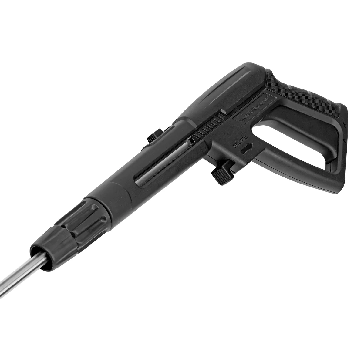 - Защита от случайного пуска — перед началом работы необходимо разблокировать рычаг моечного пистолета.