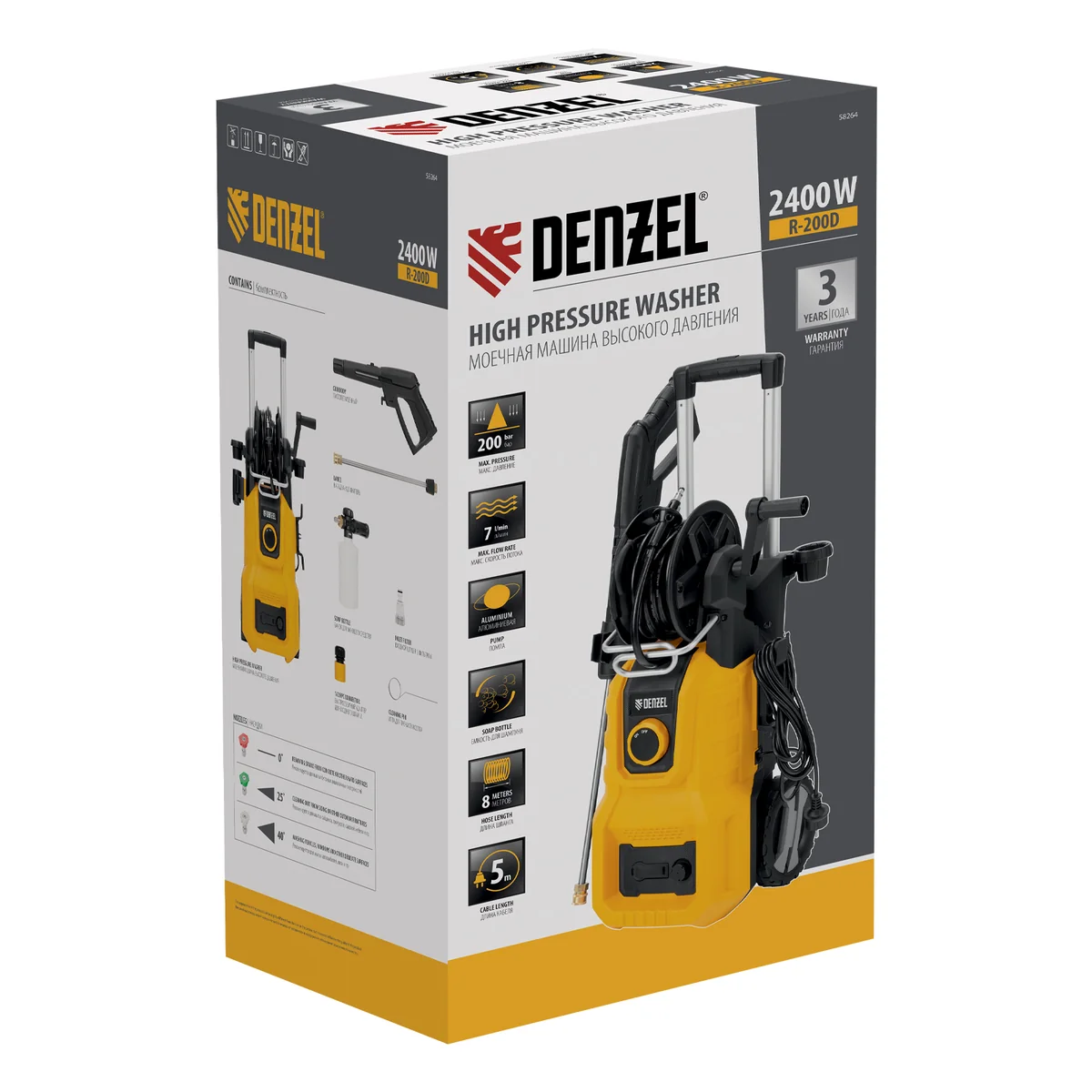 Моечная машина высокого давления Denzel R-200D 58264 мощностью 2400 Вт, с барабаном, используется для мытья дорожек, тротуаров, фасадов зданий, автомобилей, окон, садовой мебели и инвентаря. Максимальное давление составляет 200 бар, производительность — 420 л/ч. Мойка подключается к водопроводной сети, а в случае ее отсутствия может забирать воду из любого открытого резервуара, работая в режиме самовсасывания. Надежная алюминиевая помпа со стальными плунжерами обеспечивает стабильное давление даже при длительном интенсивном использовании. Техника незаменима на дачном участке.