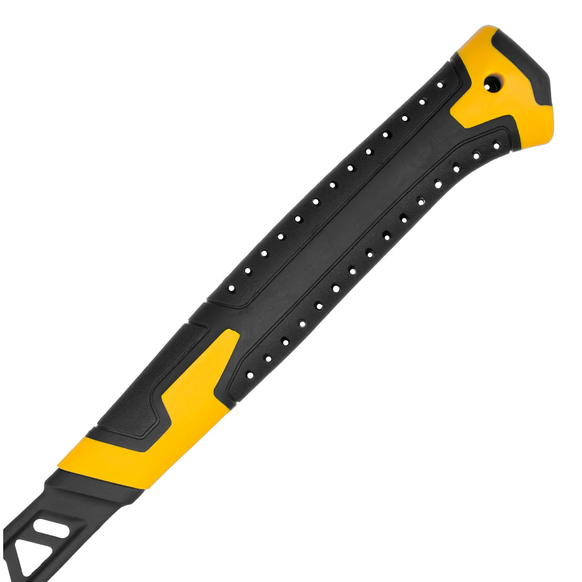 Цельнокованый молоток кровельщика Denzel 10623 с бойком весом 600 г, с магнитом и двухкомпонентной обрезиненной рукояткой, предназначен для проведения профессиональных кровельных работ. Благодаря особой конструкции позволяет проводить такие виды работ, как: выпрямление и извлечений гвоздей, пробивание отверстий в листовом металле, отгибание кромок. На рабочей поверхности бойка сделаны насечки для уменьшения риска соскальзывания при нанесении ударов по гвоздю.ПреимуществаДолговечность — цельнокованая конструкция устойчива к механическим повреждениям, боек твердостью 50-55 HRC выдерживает ударные нагрузки в течение длительного времени.Прочность и деформационная стойкость — молоток изготовлен из среднеуглеродистой стали 45.Дополнительные возможности — при помощи специального отверстия в корпусе можно выгибать прутья и гвозди.Удобная работа — забивать гвозди можно одной рукой, т. к. боек оснащен магнитным держателем для фиксации крепежа.Эргономичность — двухкомпонентная обрезиненная рукоятка с рельефной поверхностью удобно лежит в руке и не выскальзывает из ладони.