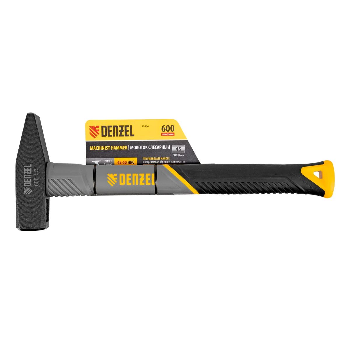 Молоток слесарный, 600 г, кованый, фибергласовая рукоятка c TPR покрытием Denzel 10486