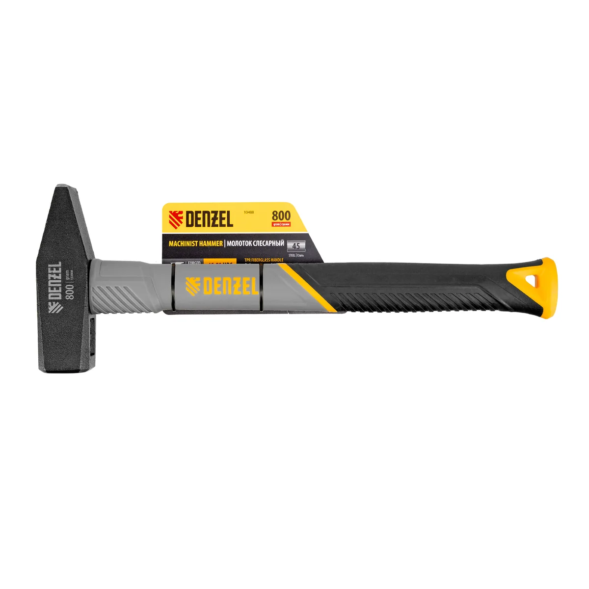 Молоток слесарный, 800 г, кованый, фибергласовая рукоятка c TPR покрытием Denzel 10488