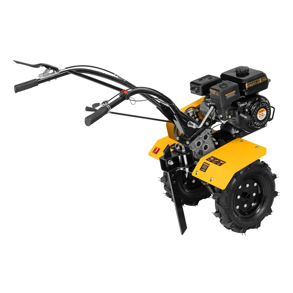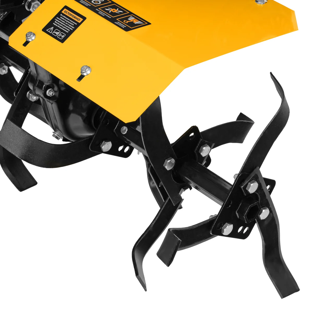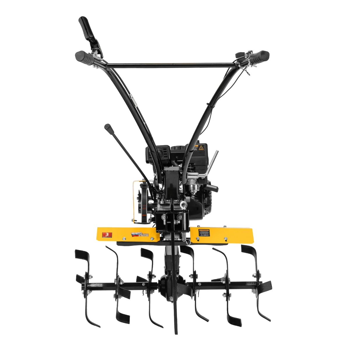 - Комфортная транспортировка — усиленная рукоятка-бампер упрощает перемещение мотоблока по участку.