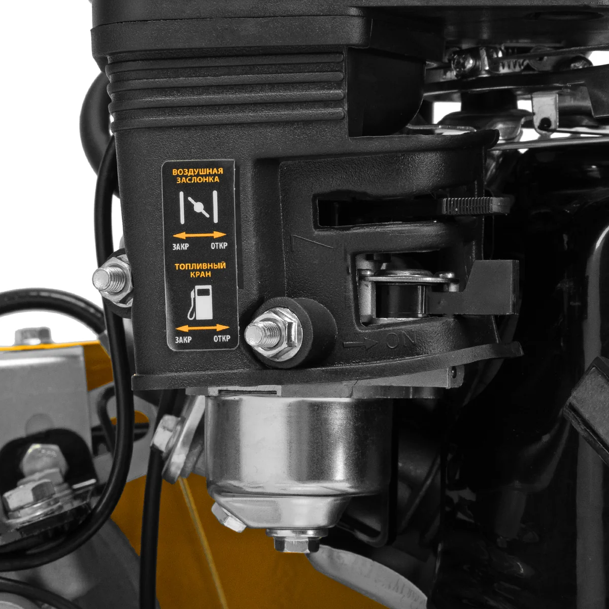 - Защита двигателя от поломки — мотоблок не запустится при низком уровне масла в картере.