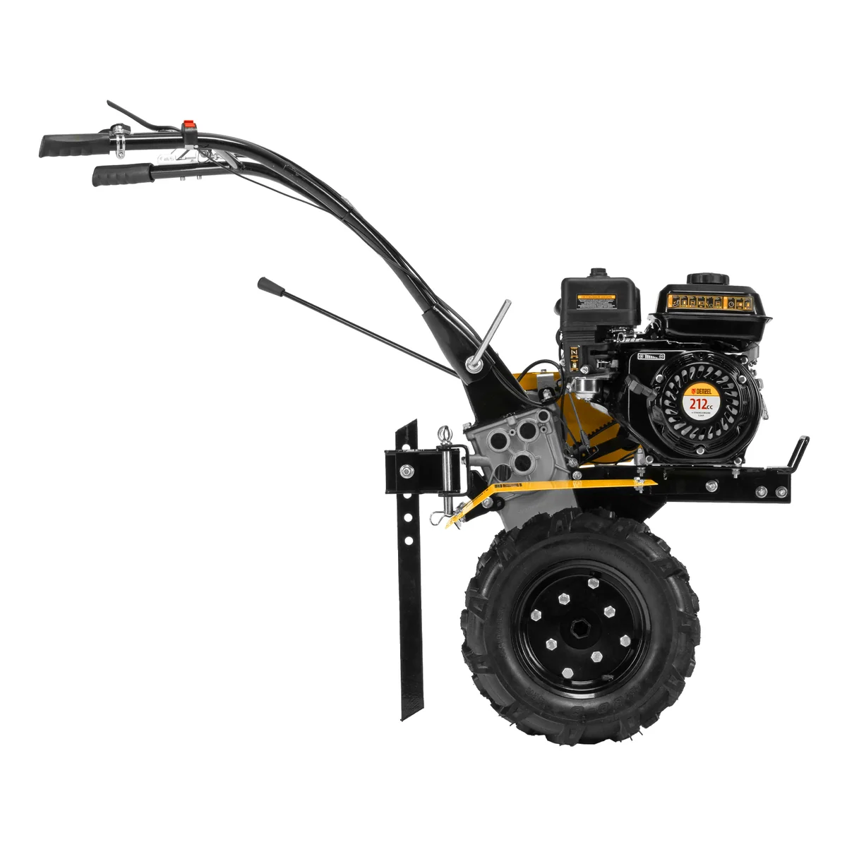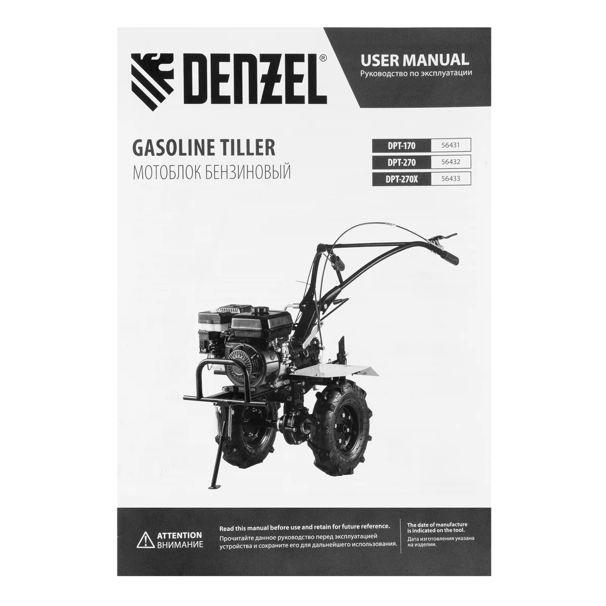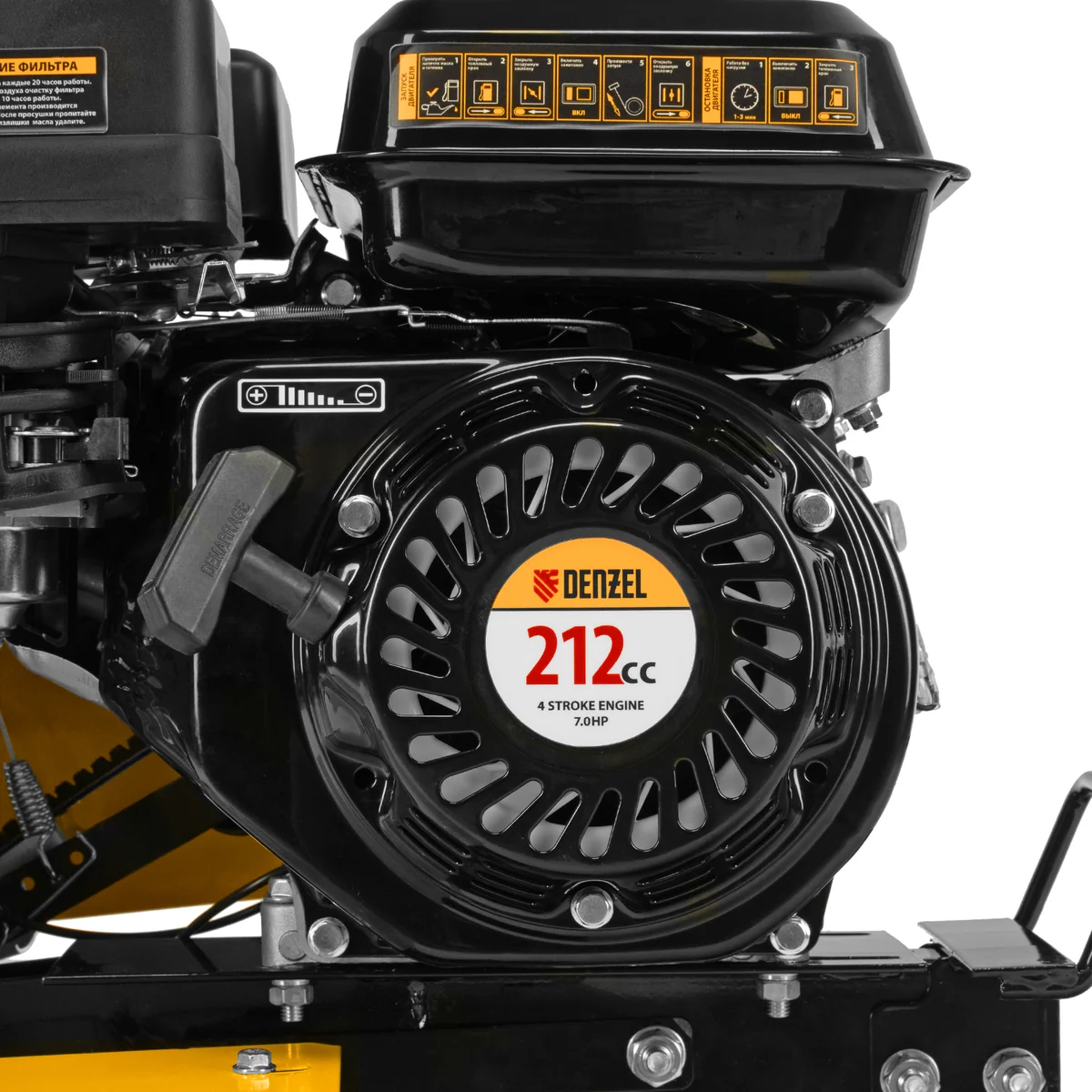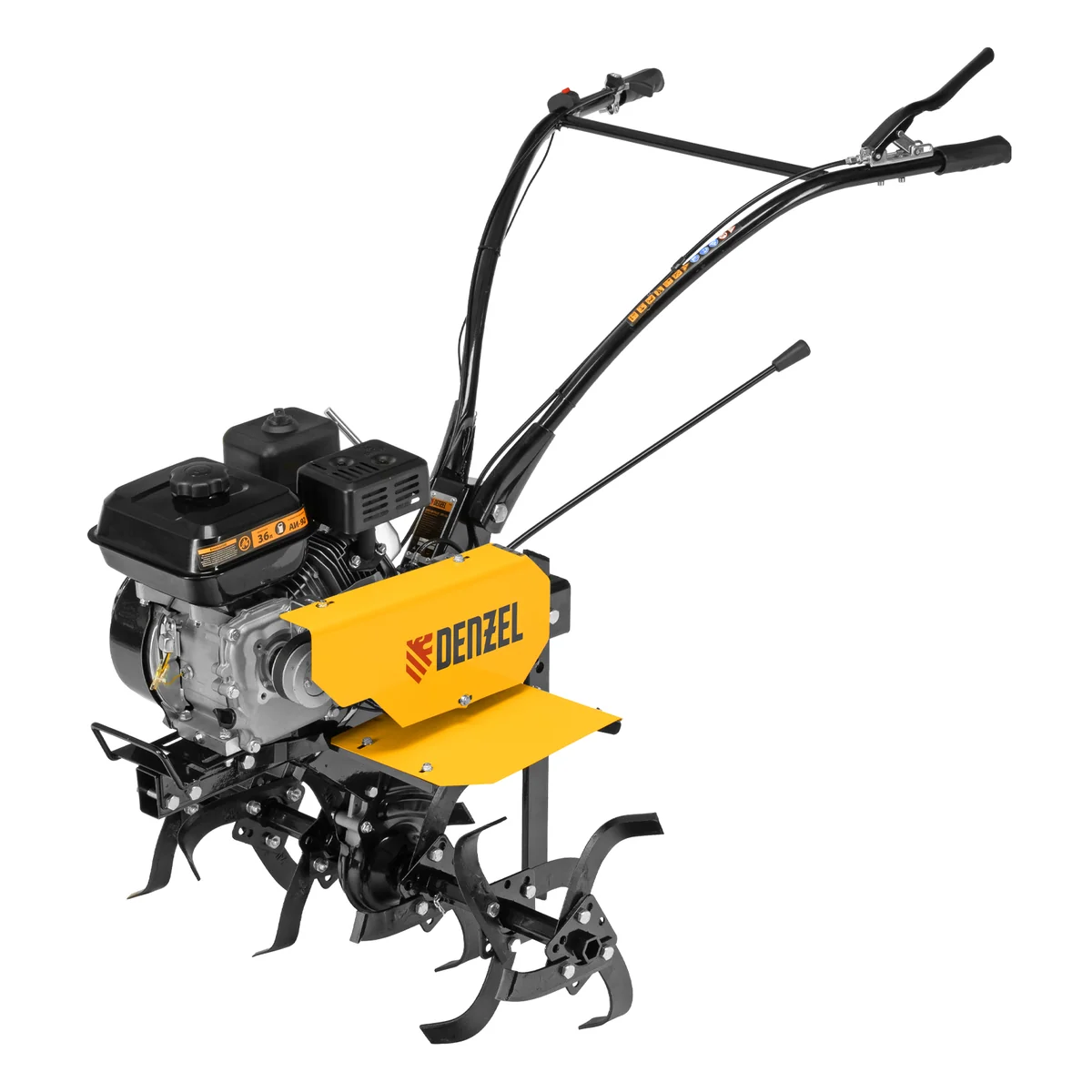 Мотоблок Denzel DPT-170 56431 с двигателем объемом 212 см3 и мощностью 7 л.с., ременным сцеплением, шкивом отбора мощности (ШОМ) и коробкой передач 2В/1Н используется для проведения различных сельскохозяйственных работ. Удобен для обработки участков большой площади: в комплект поставки входит 18 высокопрочных фрез, обеспечивающих ширину вспахивания 85 см и глубину 35 см.;Возможность установки различного навесного оборудования, в том числе активного, значительно расширяет возможности мотоблока и позволяет снизить расходы на приобретение сельскохозяйственной техники. Техника совместима со всеми моделями навесного оборудования, представленного в ассортименте Denzel (приобретается отдельно). Установив прицеп Denzel 59950, мотоблок можно использовать в качестве транспортного средства.