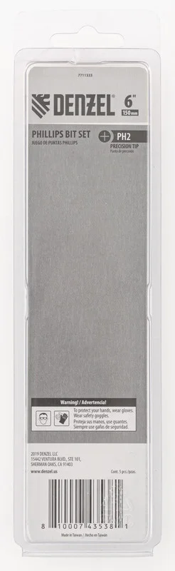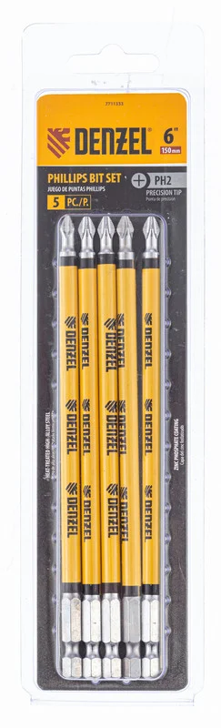 Набор бит TORX 30 х 50 мм Denzel включает в себя 5 насадок с хвостовиками 1/4 дюйма из стали S2 для работы с шуруповертами. Шлиц в форме звезды служит для быстрого монтажа и демонтажа винтов при сборке бытовой техники и электроприборов. Набор универсален и подходит как для бытового, так и для профессионального применения. Благодаря конструктивной особенности лучи «звезды» надежно сцепляются с крепежом, нагрузка равномерно распределяется на все грани, это снижает риск соскальзывания биты и обеспечивает высокую точность работ.ПреимуществаДолговечность и надежность — биты сделаны из японской легированной стали S2 твердостью 54-58 HRC, что повышает их износостойкость и увеличивает срок службы.Высокое качество — точное исполнение шлица и максимальный контроль качества на производстве в Тайване позволяют добиться выверенности каждой биты и предотвратить проскальзывание рабочей части в головке крепежа.Удобная работа — намагниченный шлиц позволяет направлять шуруповерт с насаженным крепежом одной рукой, а другой придерживать закрепляемую деталь.Антикоррозионные свойства — защитное никелированное покрытие продлевает срок службы насадок.Каждая бита защищена от подделок — об этом свидетельствует цветное кольцо с логотипом ТМ Denzel.Удобное хранение — оснастка поставляется в жестком блистере с европодвесом.Большой запас — набора из 5 штук достаточно для снабжения бригады работников.