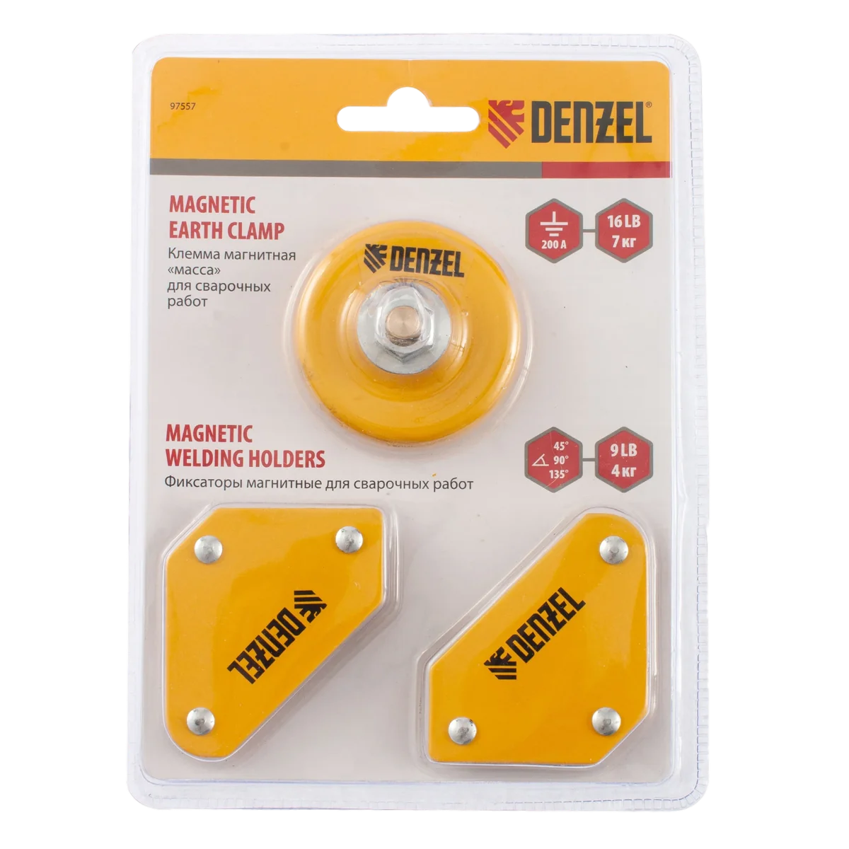Набор для сварочных работ DENZEL 97557, 2 магнитных фиксатора, магнитная клемма масса