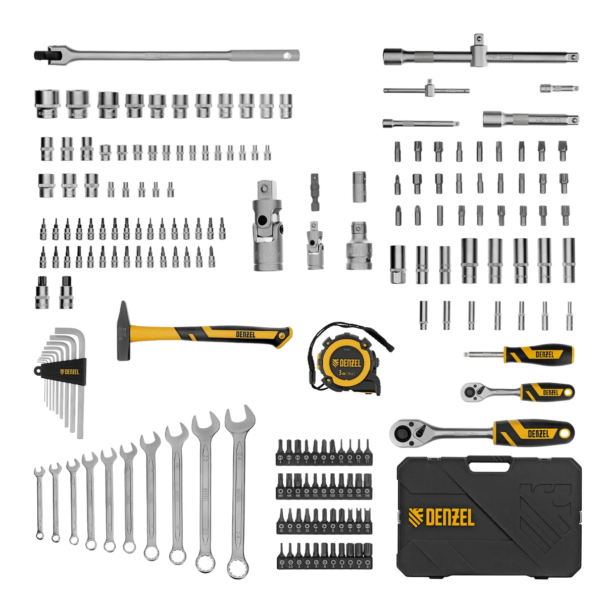 Набор инструментов, 1/2", 1/4", CrV, S2, пластиковый кейс, 194 предмета Denzel 15806