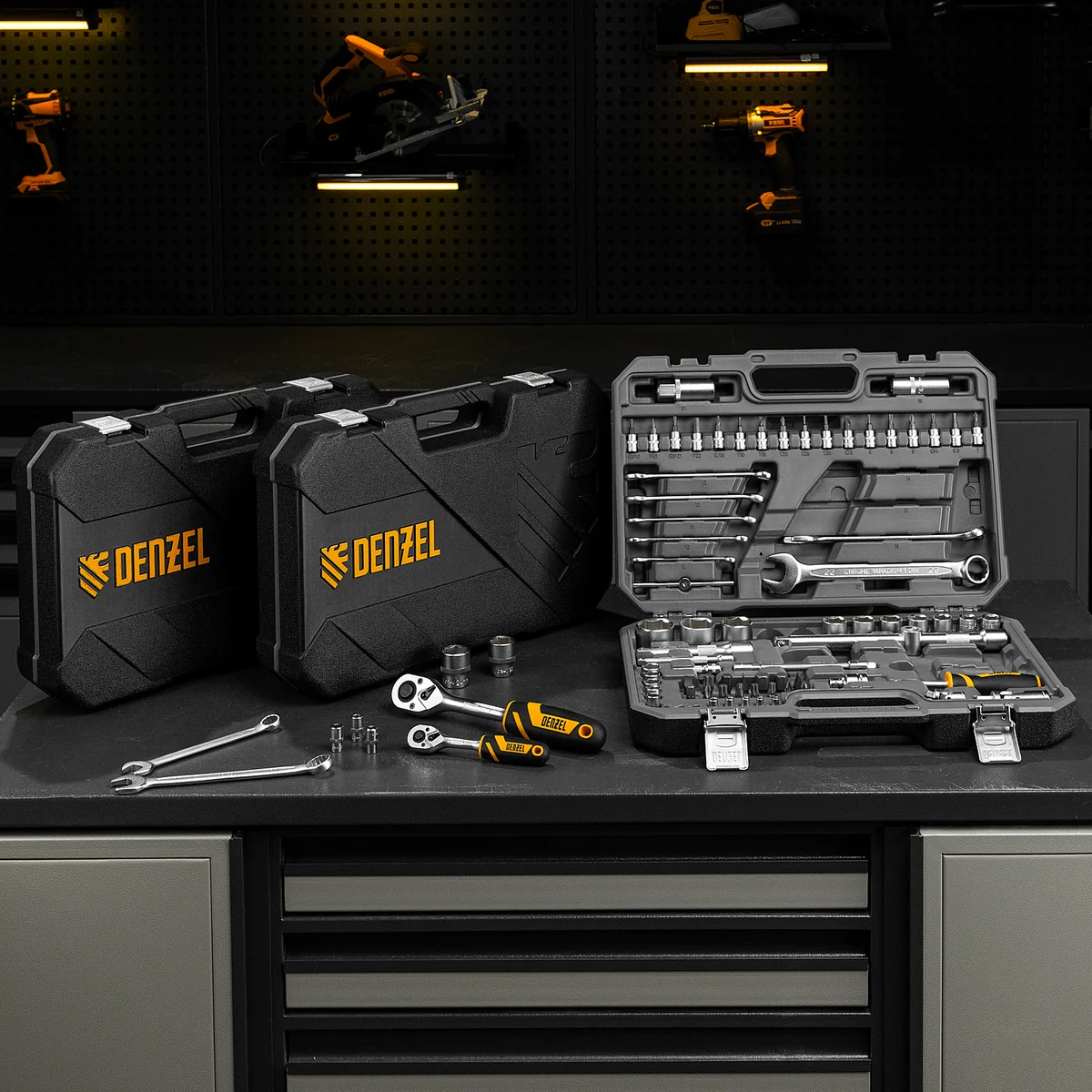 Набор инструментов, 1/2", 1/4", CrV, S2, пластиковый кейс, 94 предмета Denzel 15813