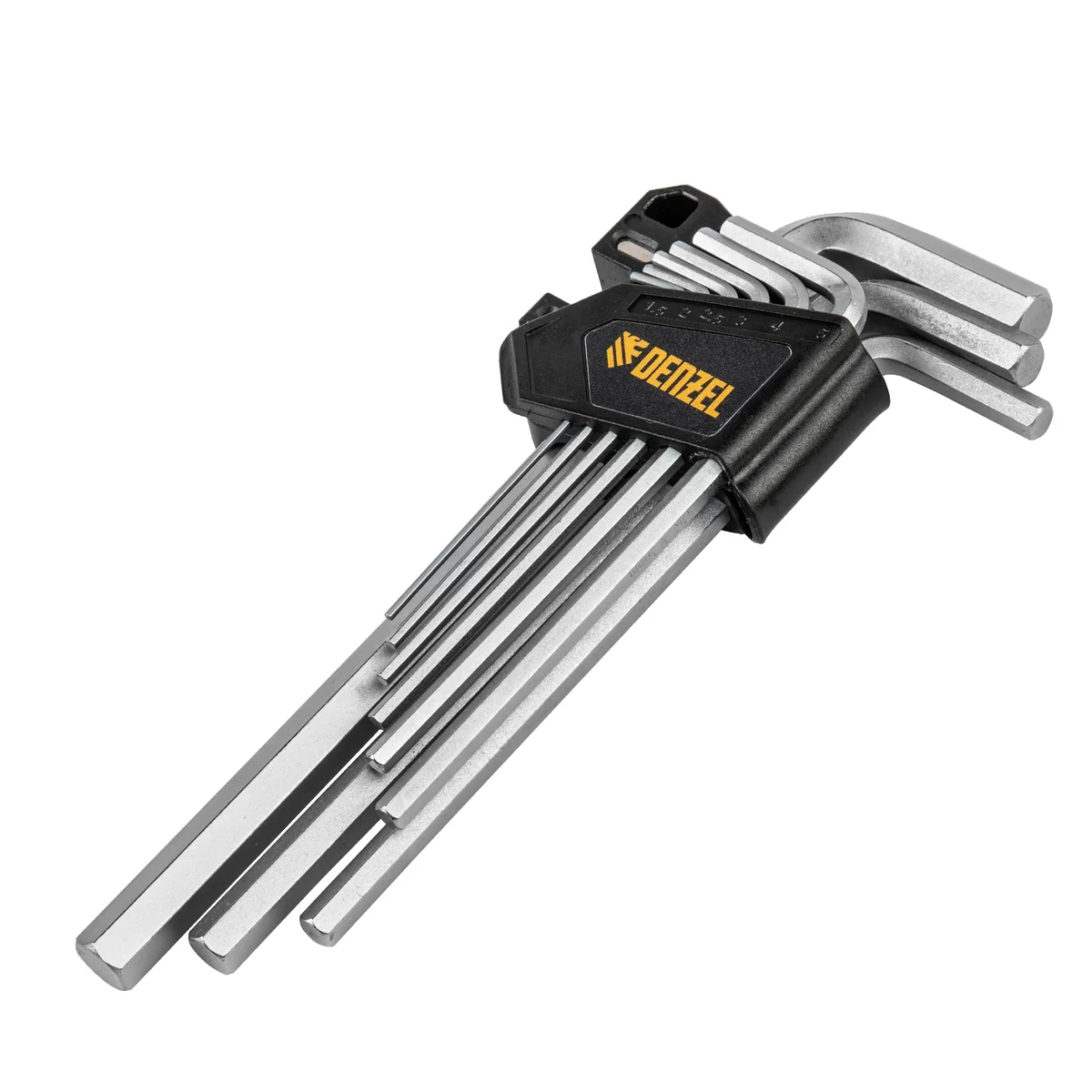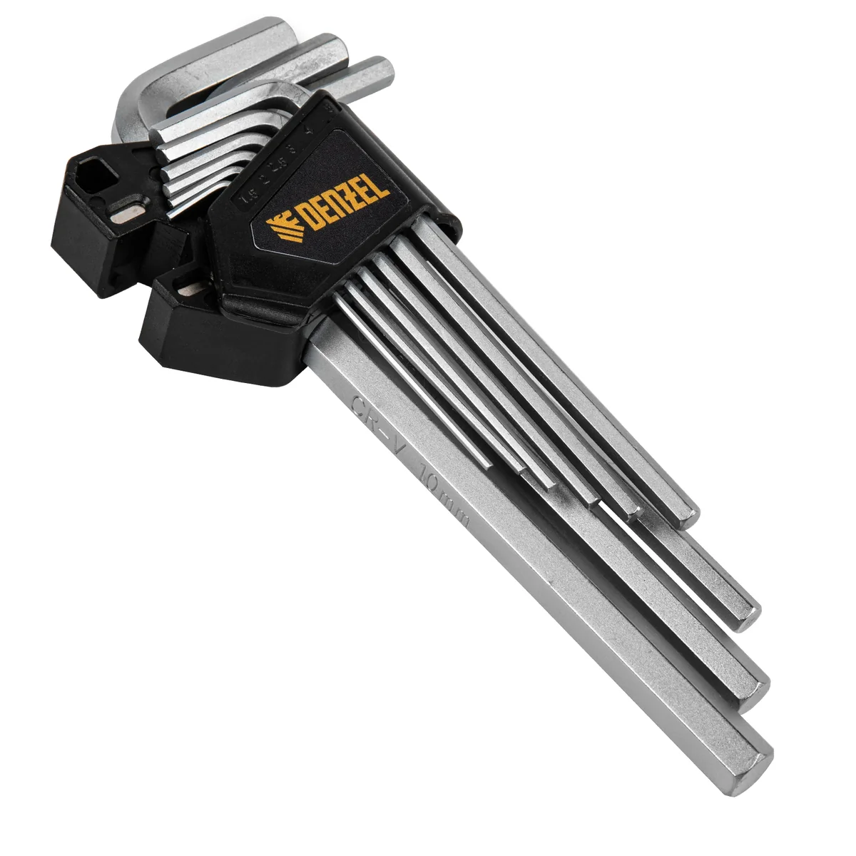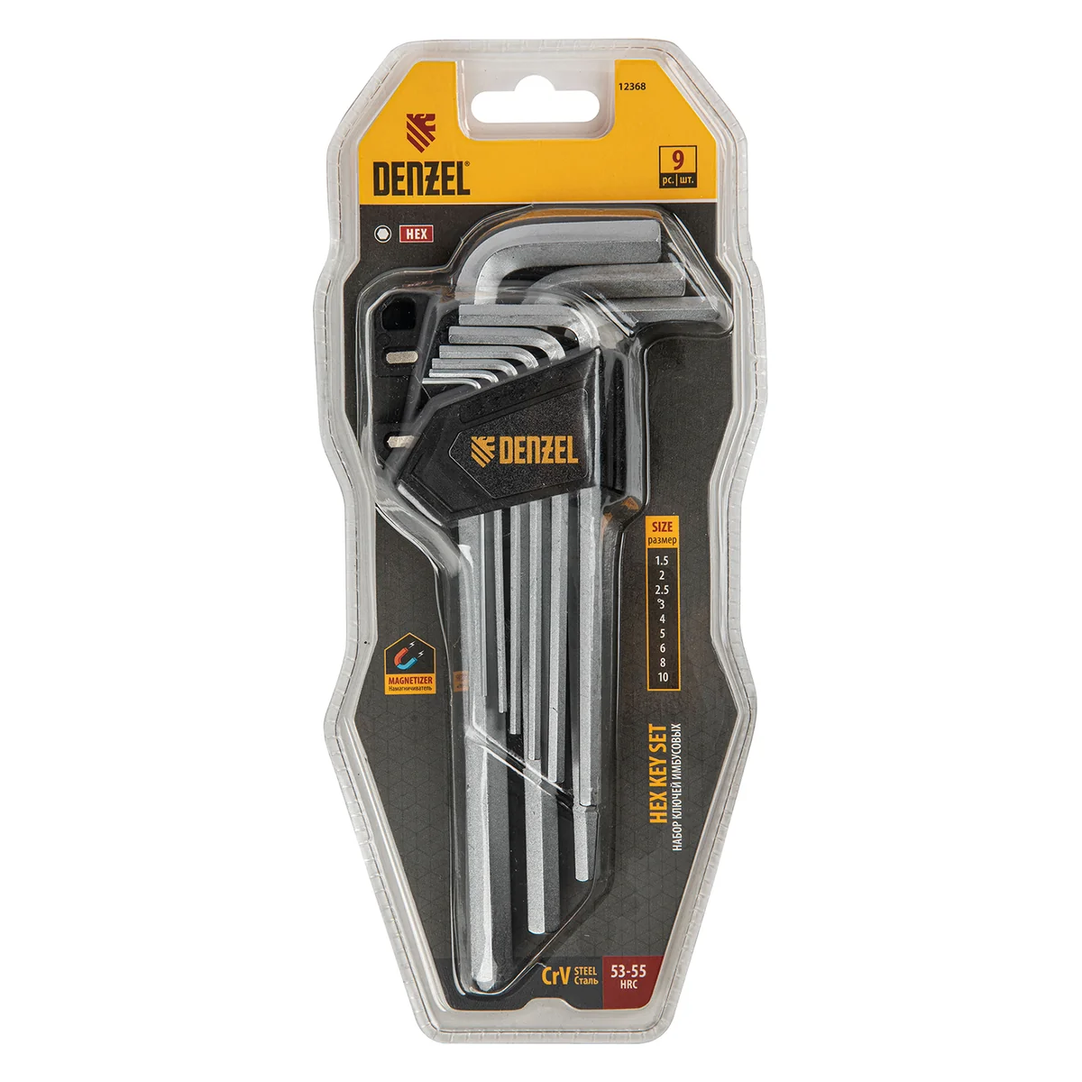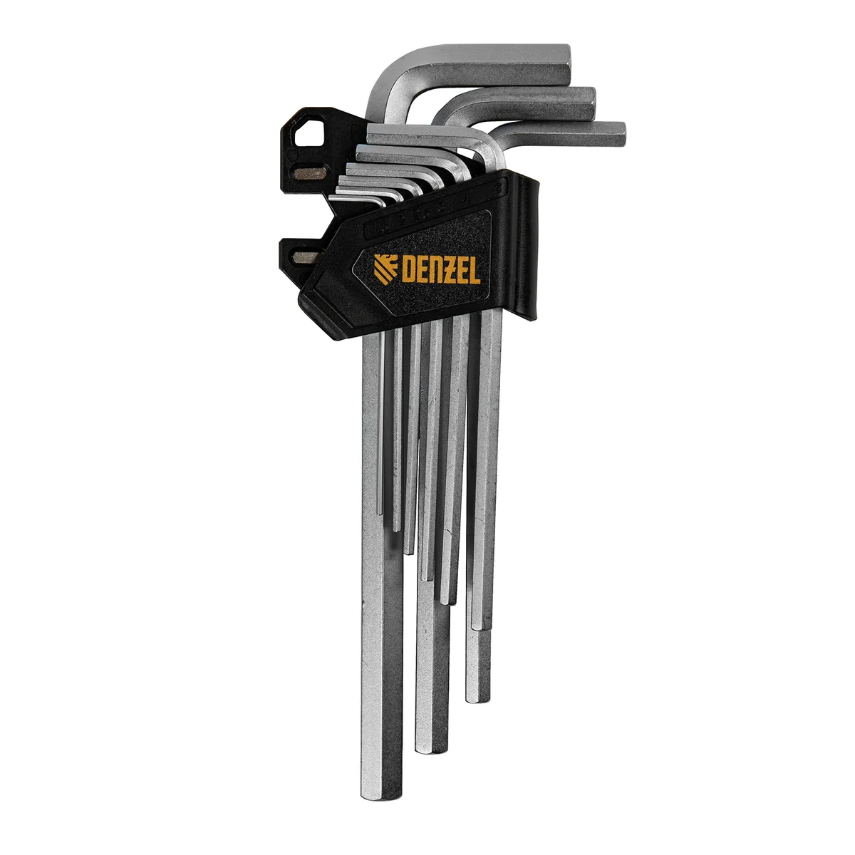 Набор Denzel 12368 включает в себя 9 имбусовых ключей из стали CrV размером 1,5-10 мм, с удлиненным профилем, позволяющих решать широкий спектр задач по монтажу и демонтажу крепежей со шлицами типа HEX. Ключи в комплекте удобны для работы в труднодоступных местах и будут полезны во время ремонта велосипедов, сборки мебели, установки и регулировки пластиковых окон и балконных дверей.ПреимуществаПрочность — ключи из хромованадиевой стали твердостью 52-55 HRC легко справляются даже с заржавевшими крепежами.Коррозионная стойкость — хромированное покрытие защищает ключи от разрушения.Комфортная работа — благодаря двойному магниту ключи надежно фиксируются в шлице евровинтов.