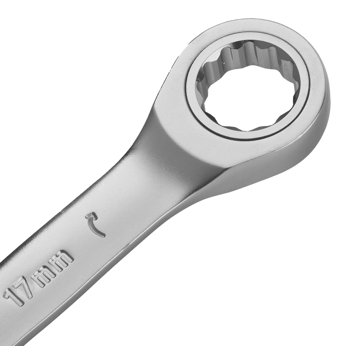 - Аккуратная работа — 12-гранная накидная часть увеличивает площадь соприкосновения с головкой крепежа и снижает риск ее деформации.