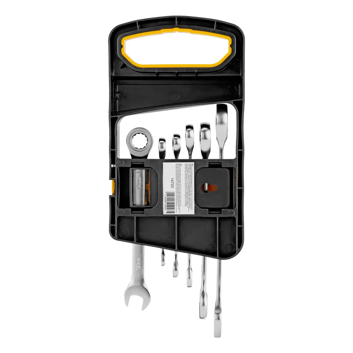 Набор комбинированных трещоточных ключей Denzel 14720 состоит из 6 инструментов из стали CrV. Используется для проведения монтажных и демонтажных работ с резьбовыми соединениями диаметром от 6 до 17 мм. У каждого ключа 2 рабочих профиля, что расширяет возможности использования набора. Инструменты пригодятся дома и в гараже.