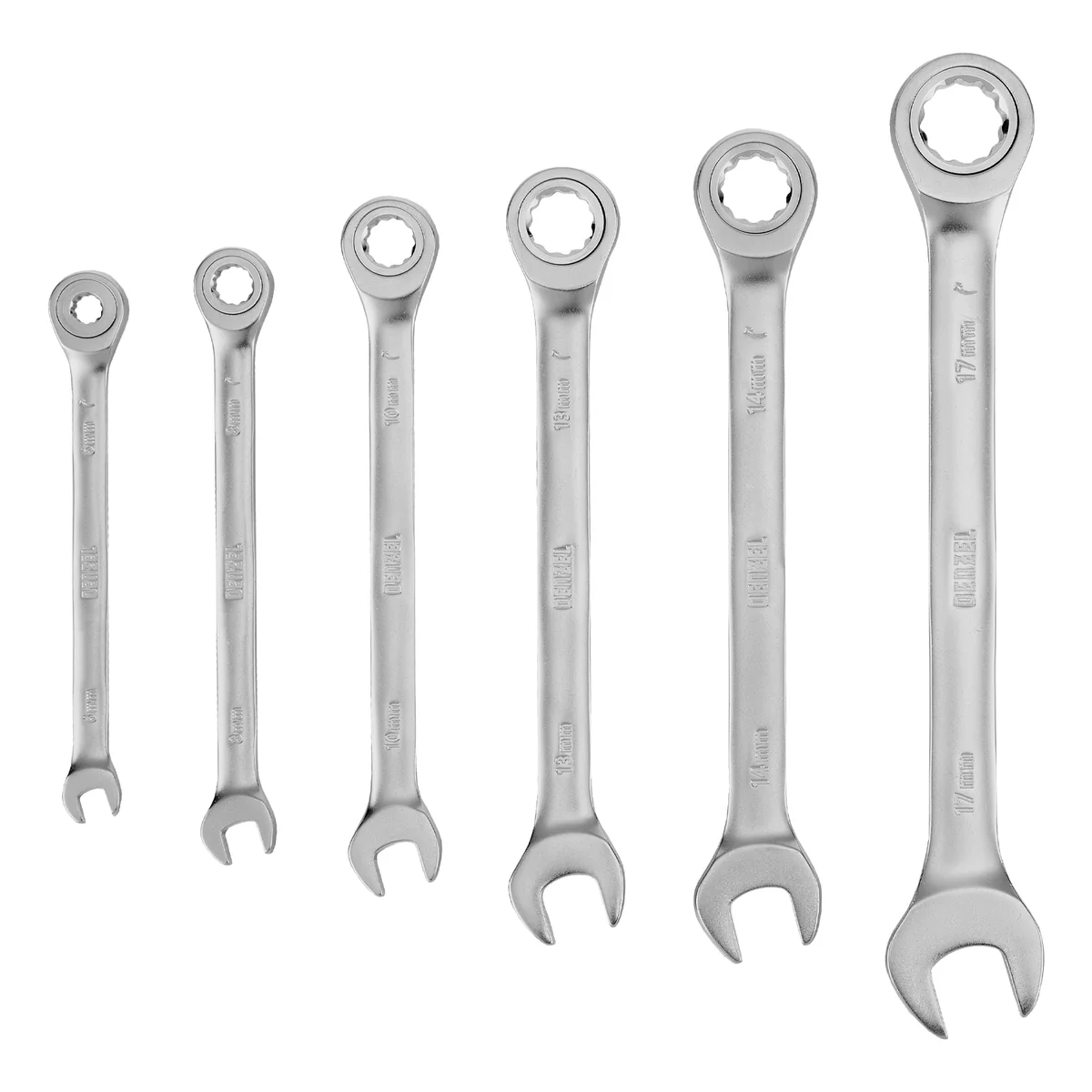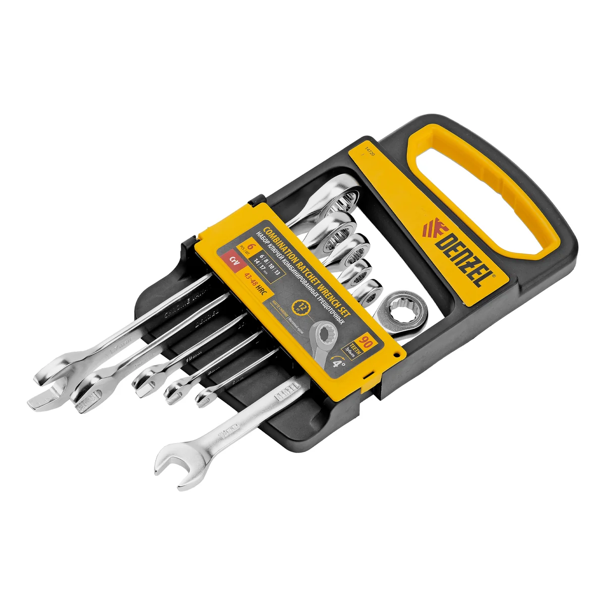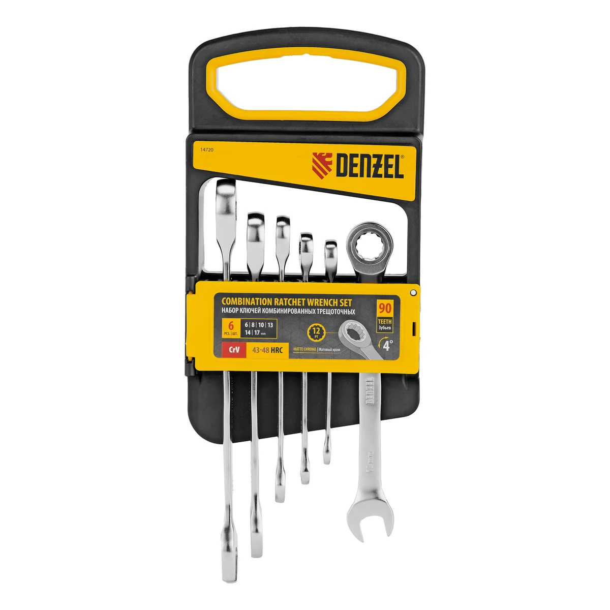 Набор ключей комбинированных трещоточных 6-17 мм, 6 шт., CrV, матовый хром Denzel 14720