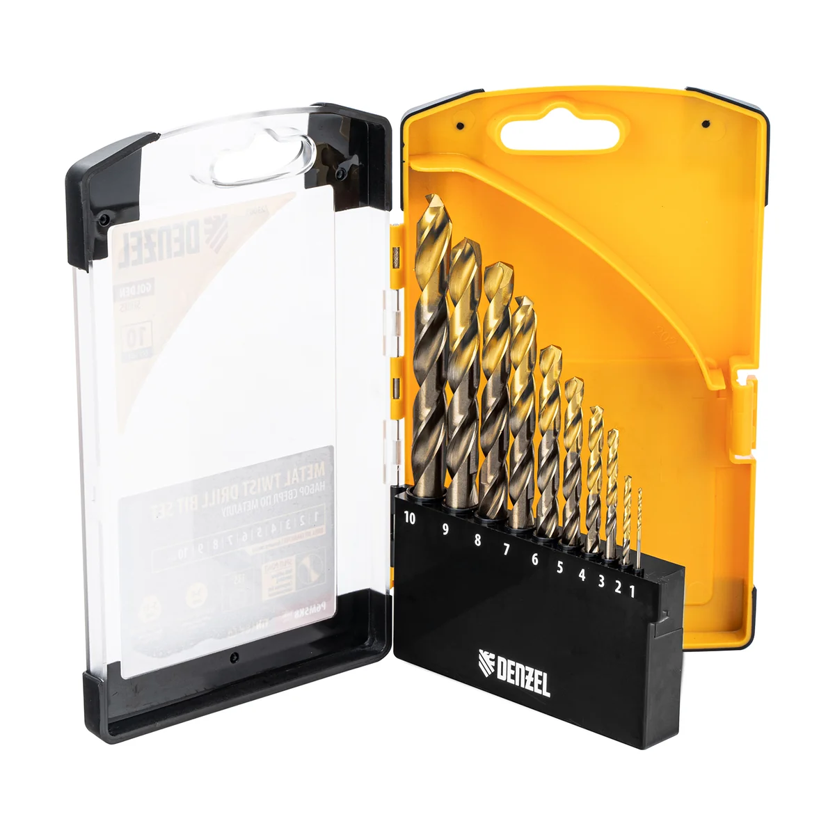 Набор Denzel Golden Tip 723005 состоит из 10 сверл по металлу диаметром 1-10 мм, изготовленных из стали P6M5K8. Угол заточки составляет 135°, что позволяет получать чистые и ровные отверстия в закаленной и нержавеющей стали, цветных и черных металлах, а также жестком пластике. Сверлам присвоен класс точности A1, что гарантирует высокое качество выполняемых работ. Оснастка характеризуется пониженным коэффициентом трения, что облегчает сверление и улучшает отвод стружки. Набор будет полезен дома и в мастерской.