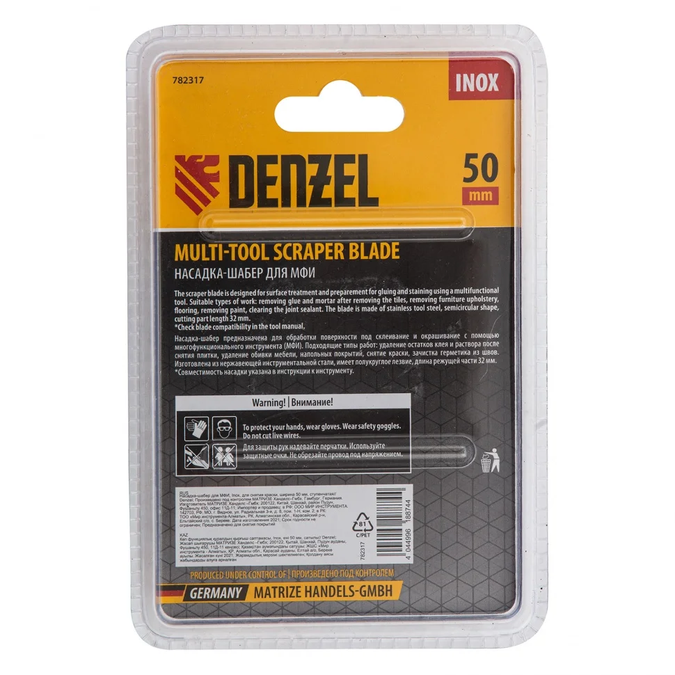 Насадка для МФИ шабер полукруг, Inox, для снятия краски и др., ширина 50 мм, длина общая 74 мм, ступенчатый Denzel 782317