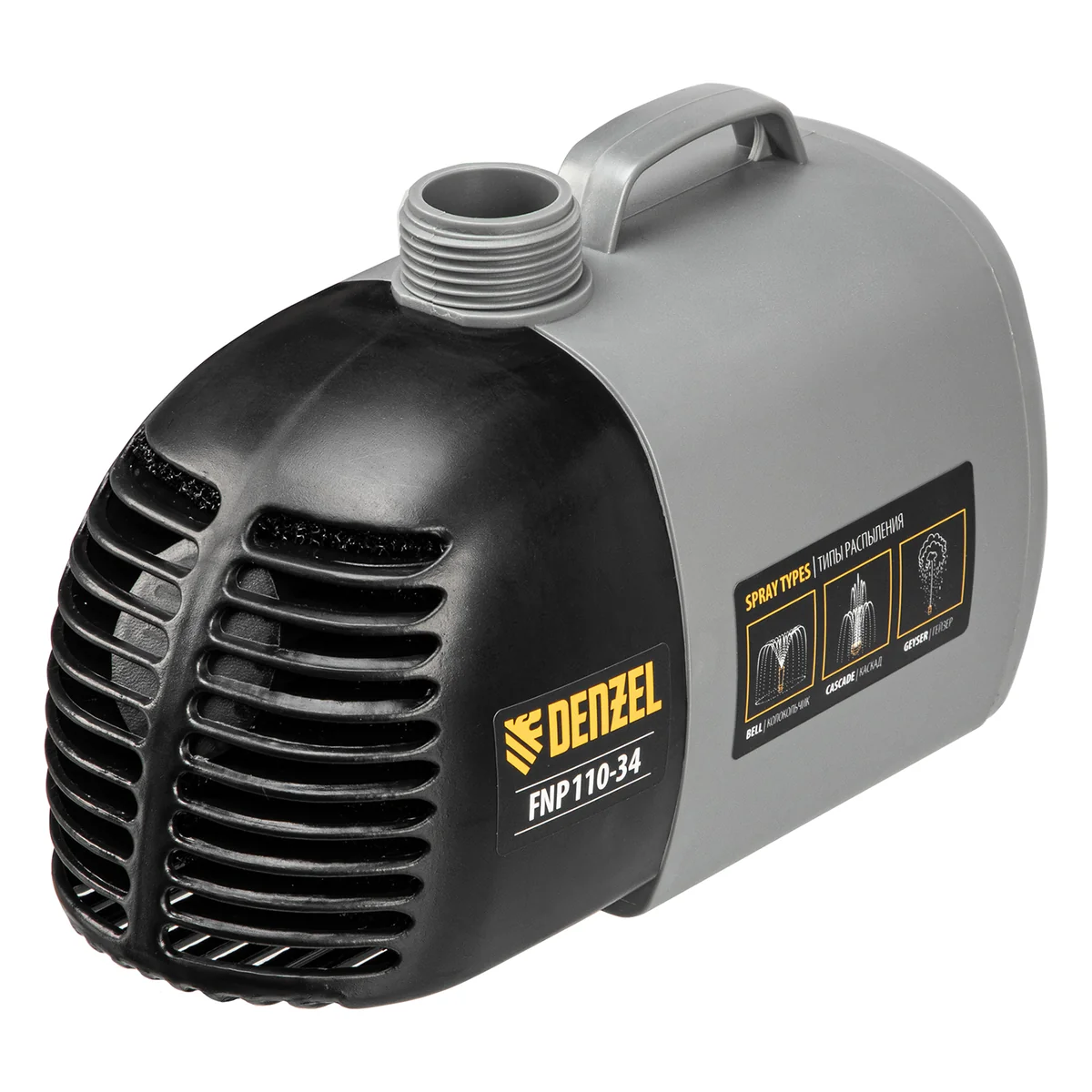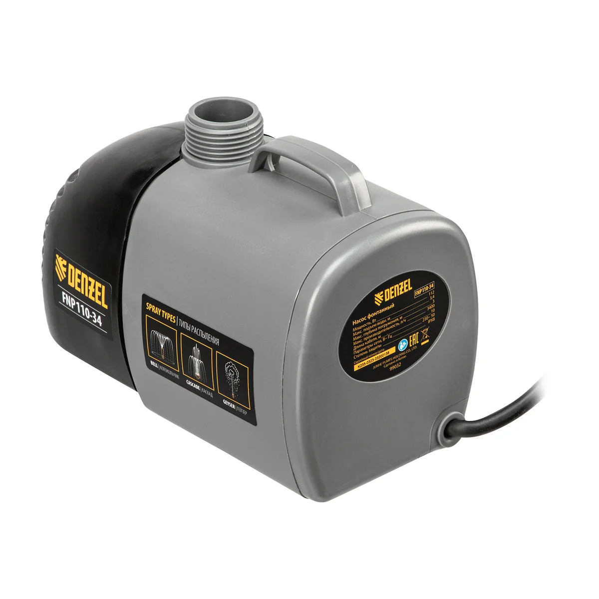 Насос фонтанный FNP110-34, 112 Вт, подъем 3,4 м, 3400 л/ч, колокольчик/каскад/гейзер Denzel 99032