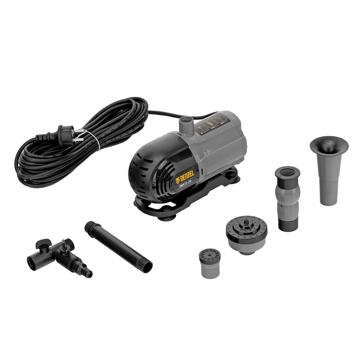 Насос фонтанный FNP31-24, 31 Вт, подъем 2,4 м, 1500 л/ч, колокольчик/2 каскада/гейзер Denzel 99031