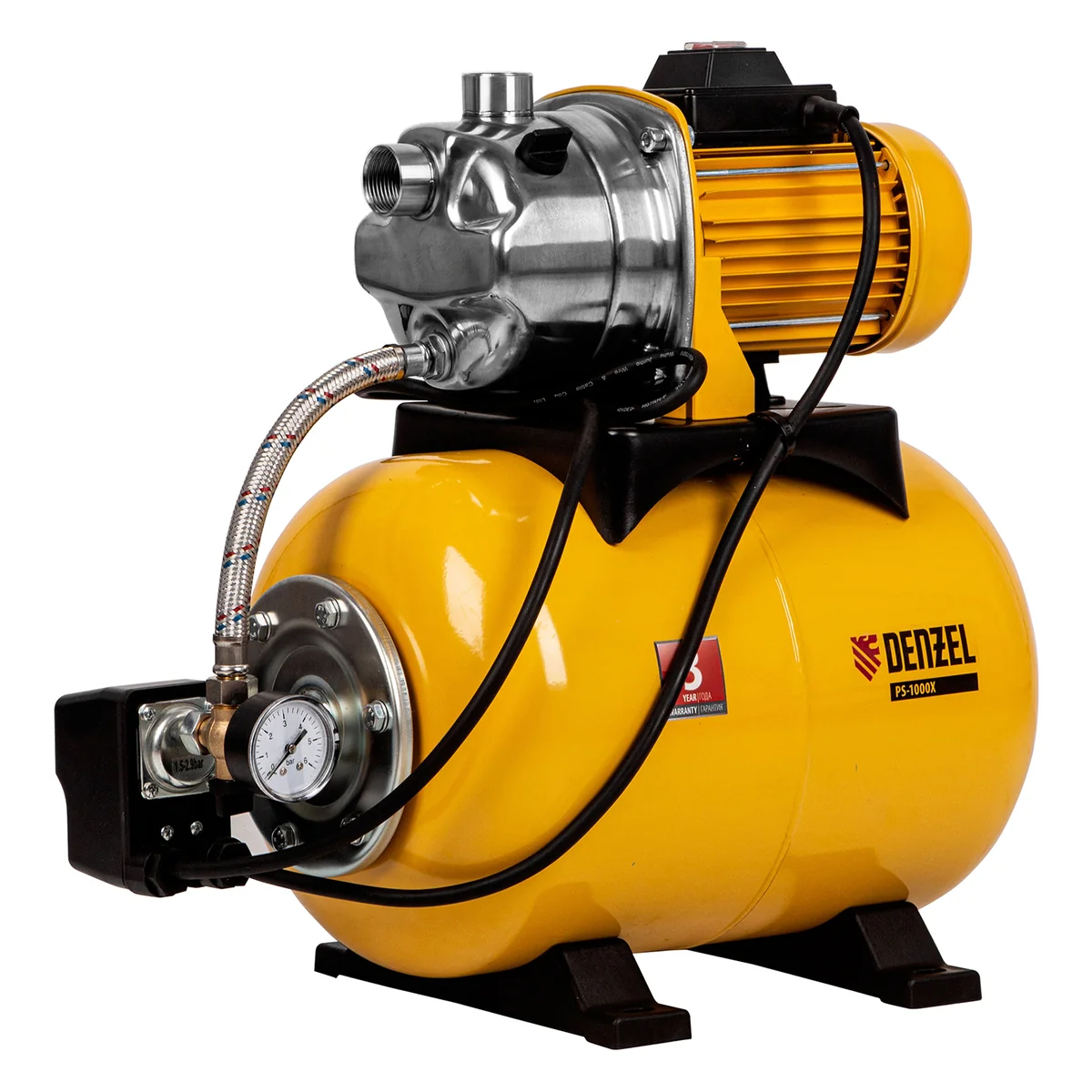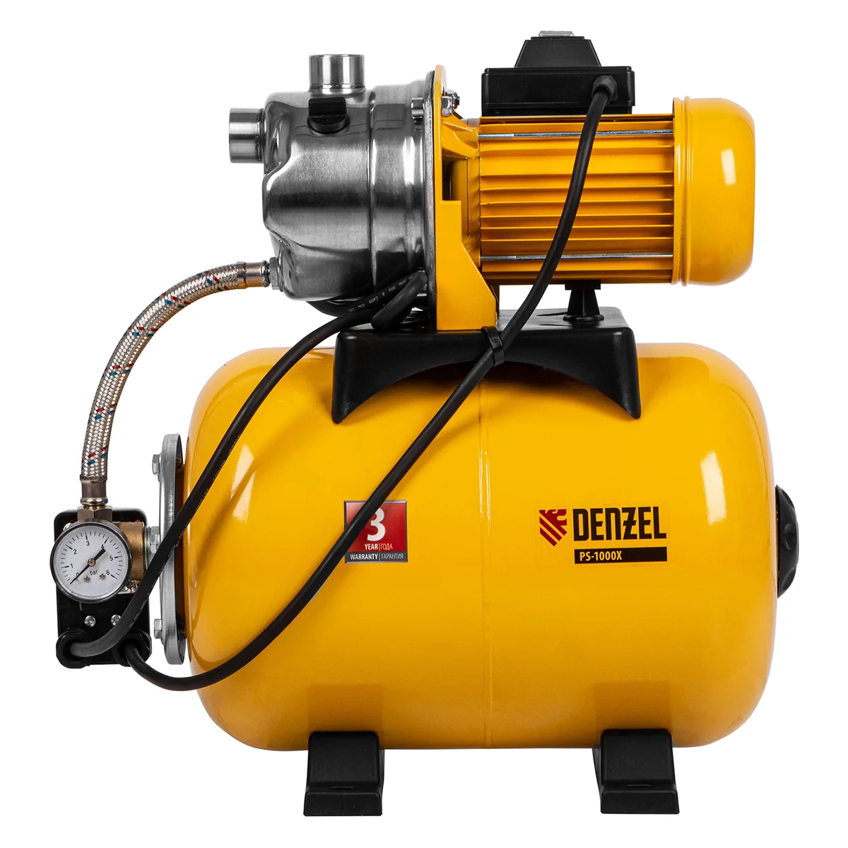 Насосная станция PS1000Х, 1000 Вт, 3500 л/ч, ресивер 24 л, подъем 44 м, нержавейка Denzel 97211