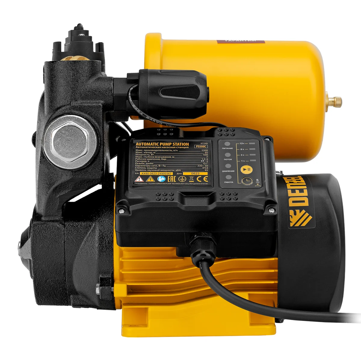 Насосная станция PS500C, 500 Вт, напор 35 м, 2200 л/ч, ресивер 2 л, блок управления Denzel 97249