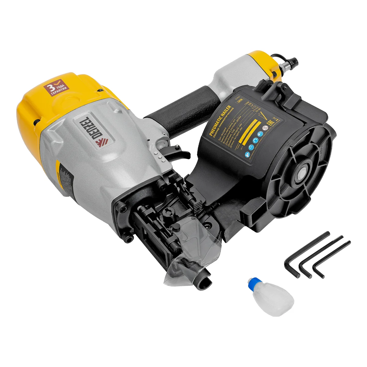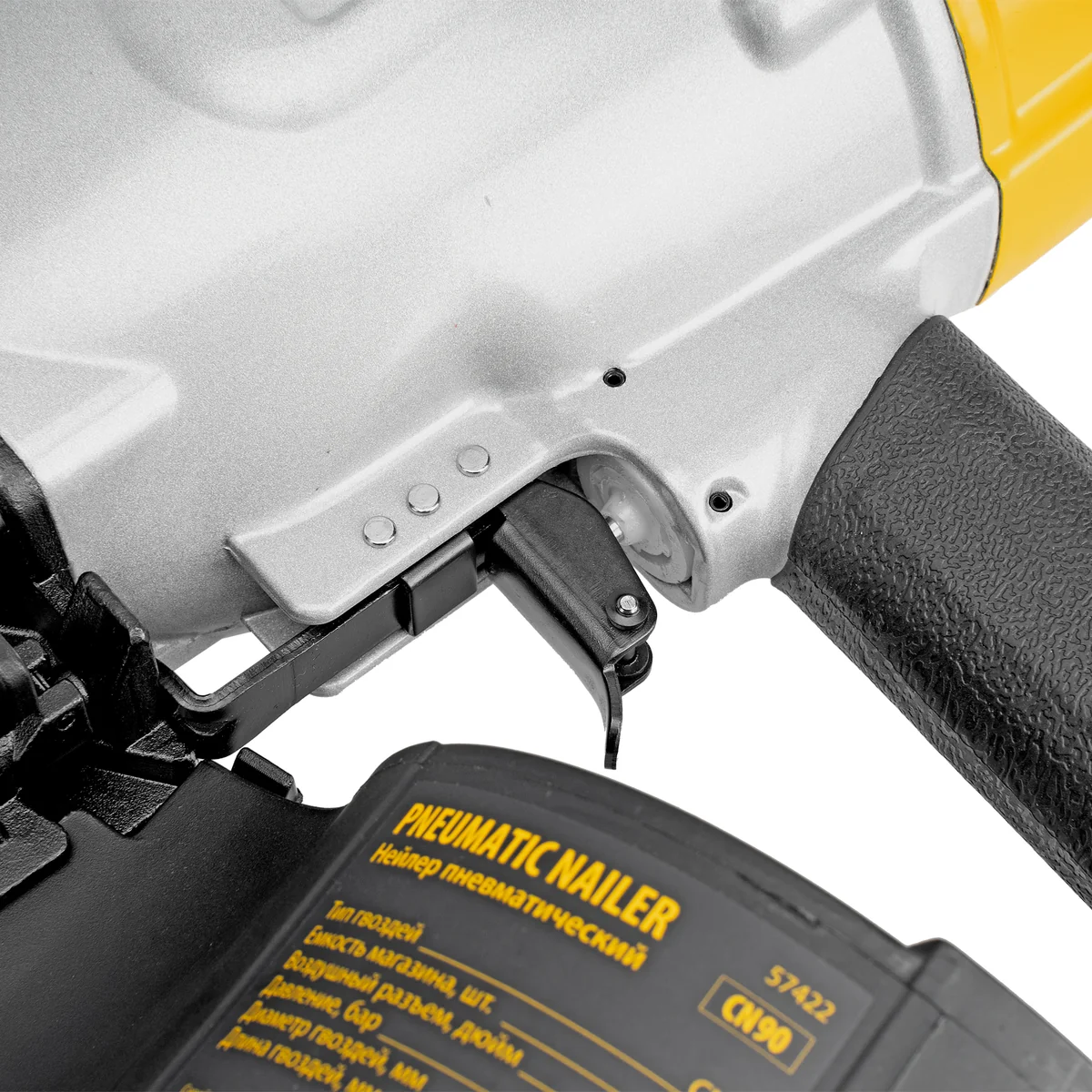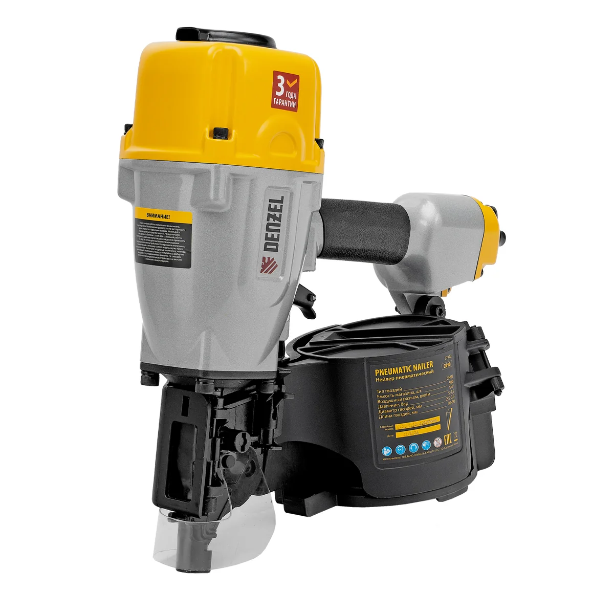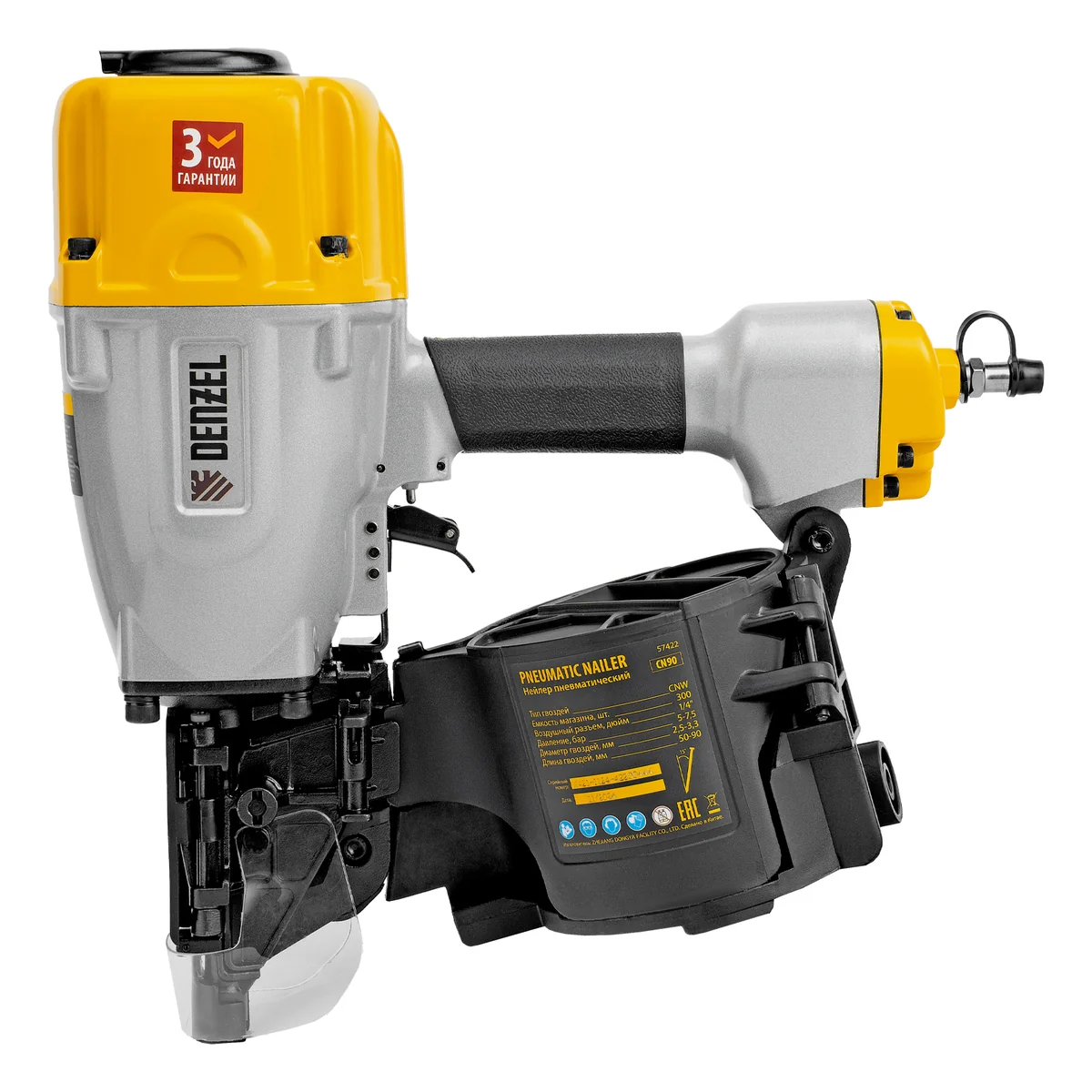 Пневматический нейлер Denzel CN90 57422 совместим с барабанными гвоздями типа CNW длиной 50-90 мм и предназначен для проведения строительно-ремонтных работ, а также производства мебели, паллет и других изделий из дерева, таких как тара и упаковка. Максимальное рабочее давление составляет 7,5 бар, что обеспечивает высокую скорость работы и позволяет быстро и эффективно решать поставленные задачи.