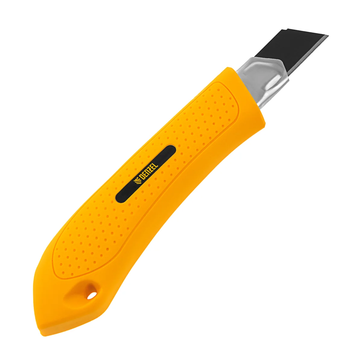 Нож, 18 мм, сменное лезвие, SK4, метал. направляющая, нажимной фиксатор// Denzel 78942