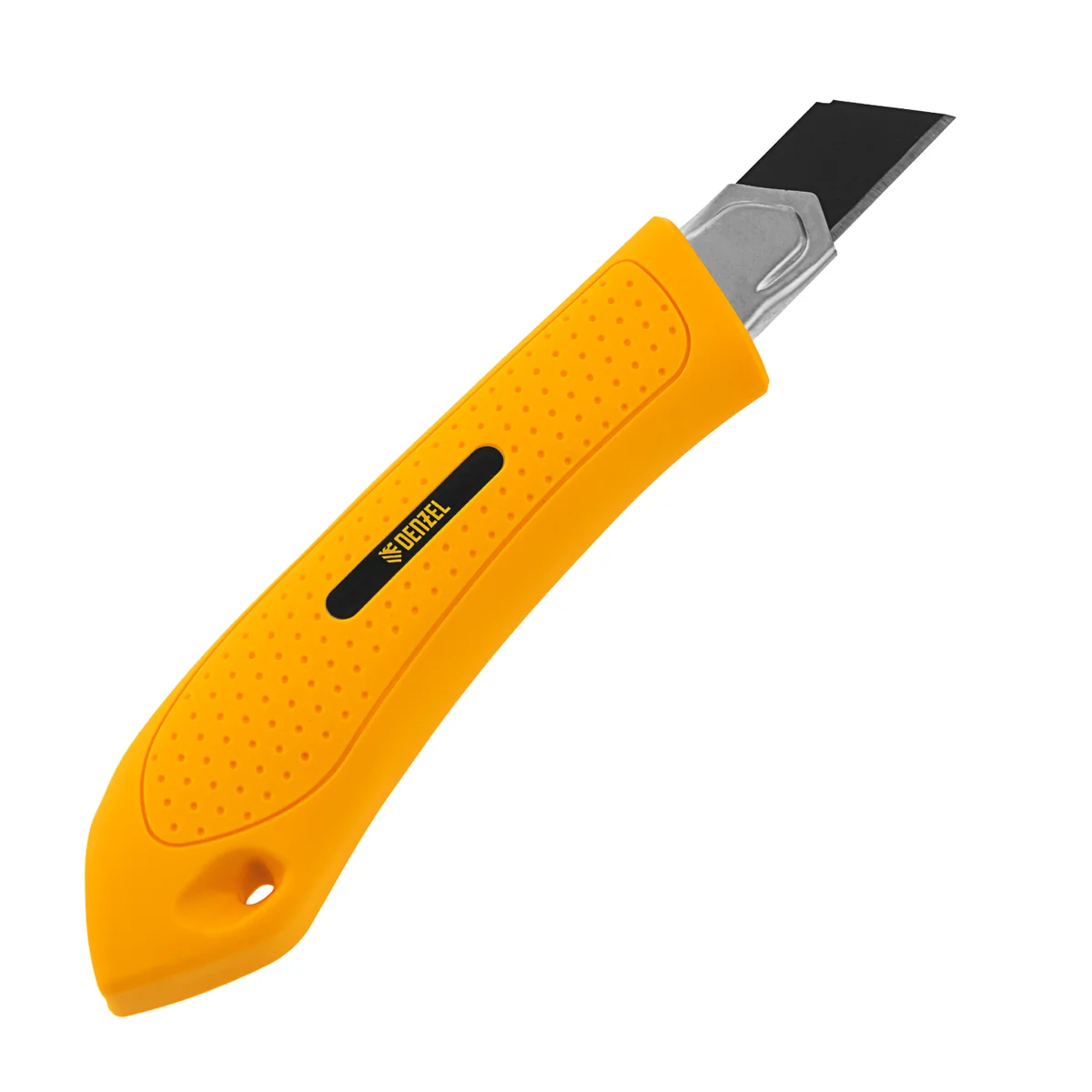 Нож, 18 мм, сменное лезвие, SK4, метал. направляющая, винтовой фиксатор// Denzel 78943