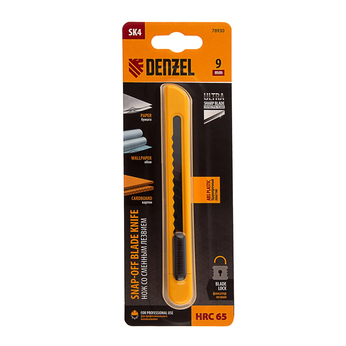 Нож, 9 мм, сменное лезвие, SK4, корпус из ABS пластика, нажимной фиксатор// Denzel 78930
