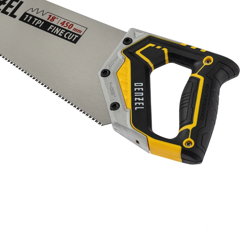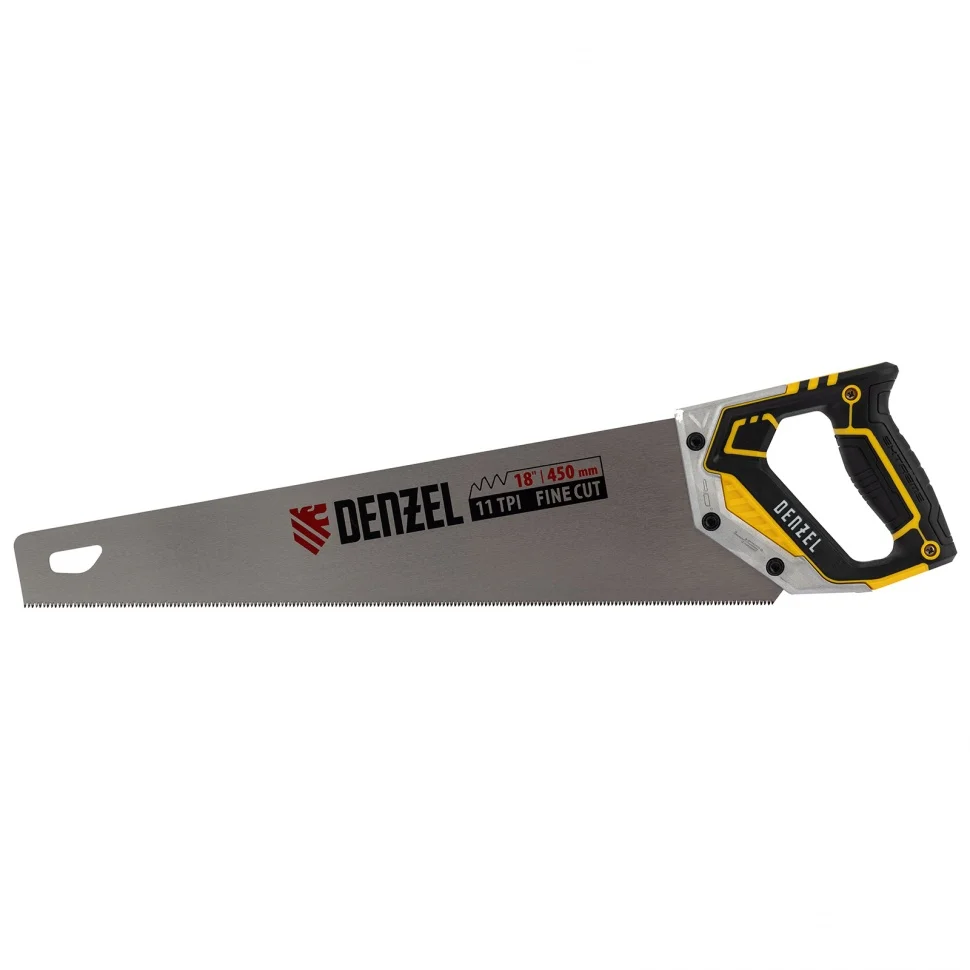 Ножовка по дереву DENZEL предназначена для столярных работ- распиловка заготовок из древесины, ДСП, ДВП, МДФ, ламината, а также из ПВХ (труба, панель, короб). Может производить продольный и поперечный распил. Мелкие зубья с шагом 11 TPI позволяют выполнять более точный и чистый рез. Ножовка обладает высокой производительностью благодаря агрессивной трехгранной, многоступенчатой заточке зубьев, которая обеспечивает идеальную геометрию и высокую остроту зуба.Преимущества:Пильное полотно изготовленное из японской стали SK-5 с шагом зуба 11 TPI, позволяет выполнять более чистый рез.Закалка ТВЧ обеспечивает дополнительную твердость зуба 55-58 HRC.Благодаря эргономичной форме и рифленой поверхности, металлопластиковая обрезиненная рукоятка удобно ложится в руку и не скользит, обеспечивая комфорт во время интенсивной работы.