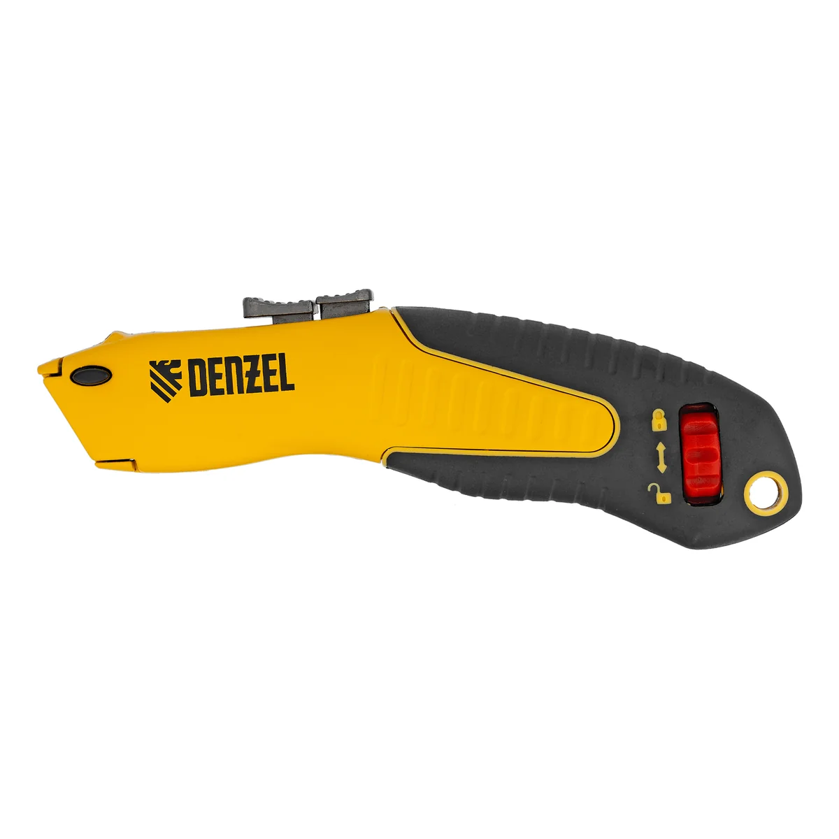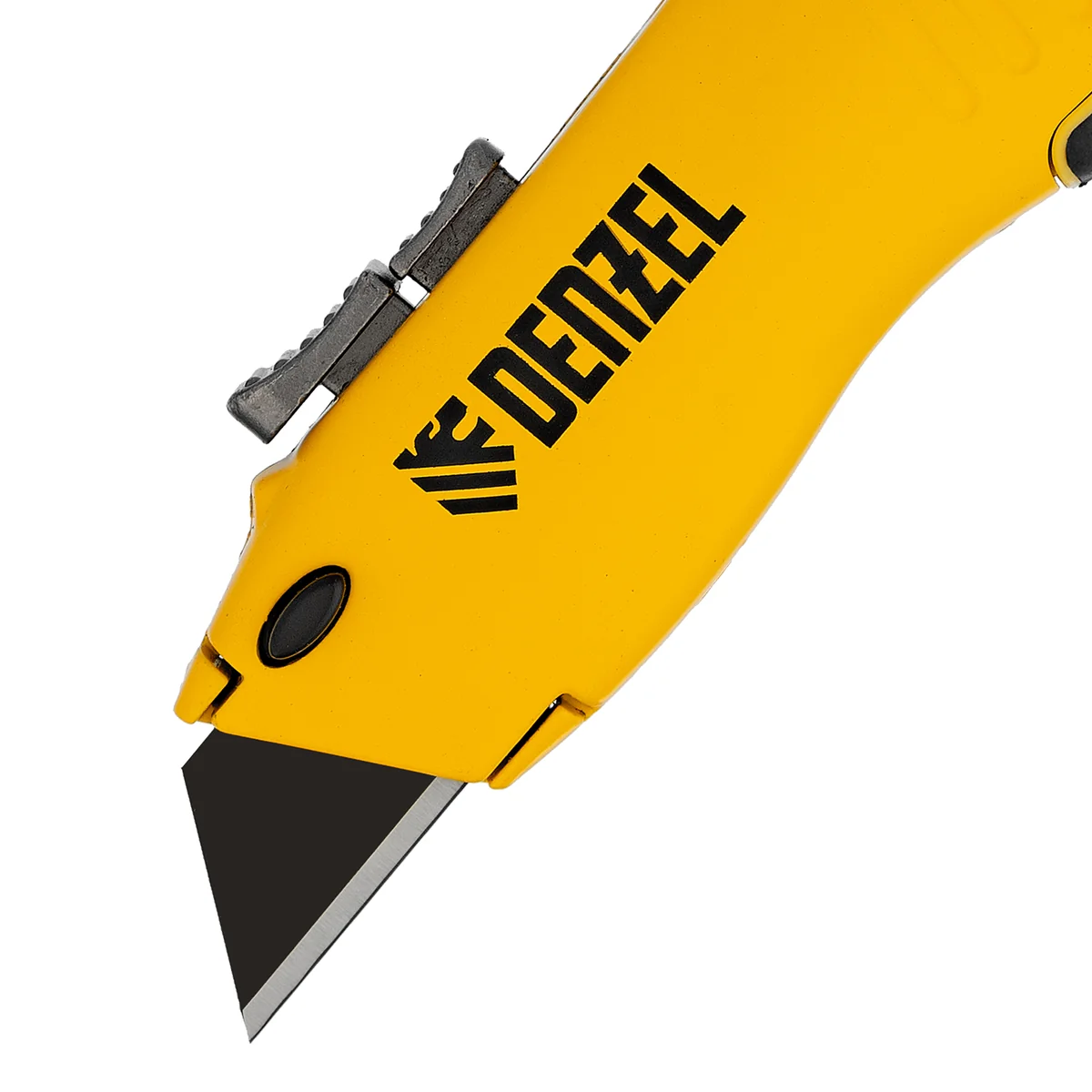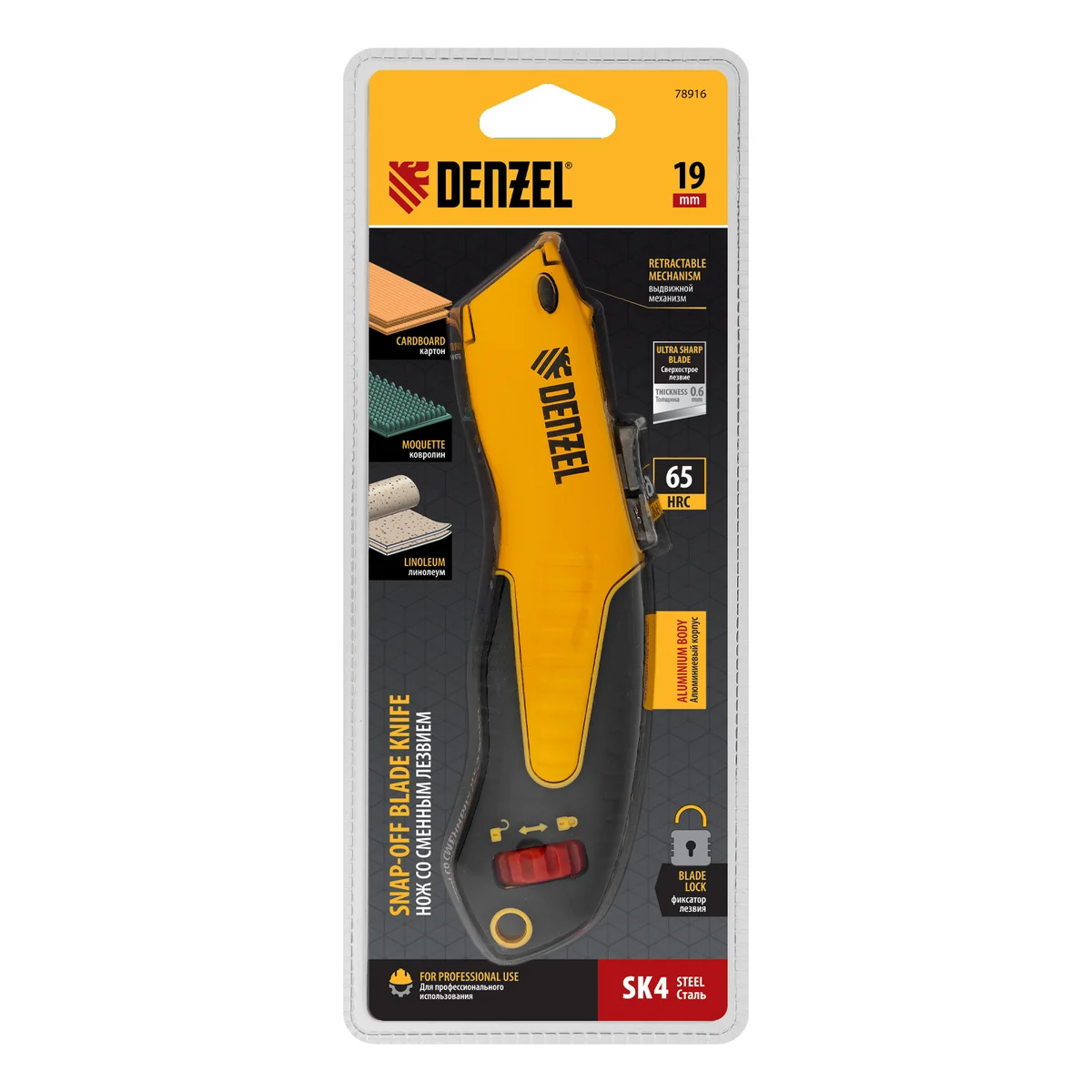 Нож, 19мм, сменное трапециевидное лезвие, SK4, алюминиевый корпус, торцевой зажим Denzel 78916