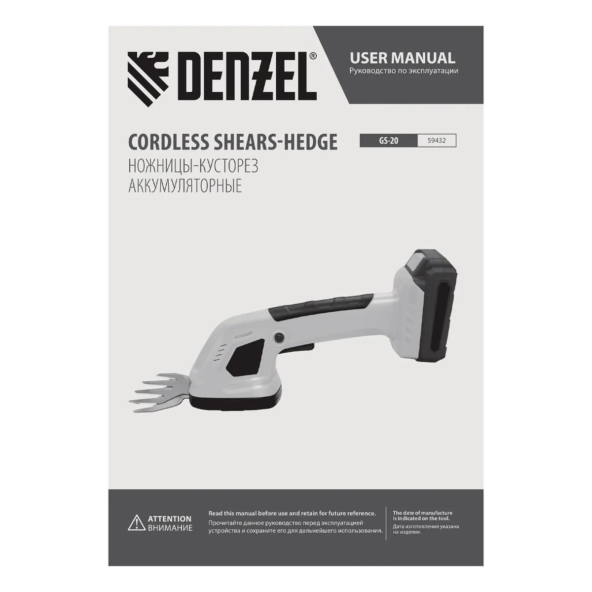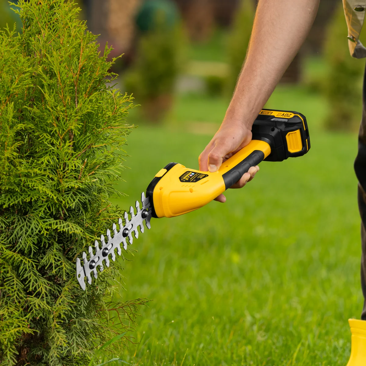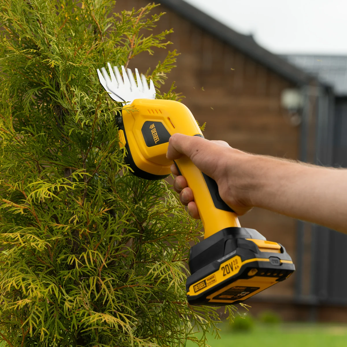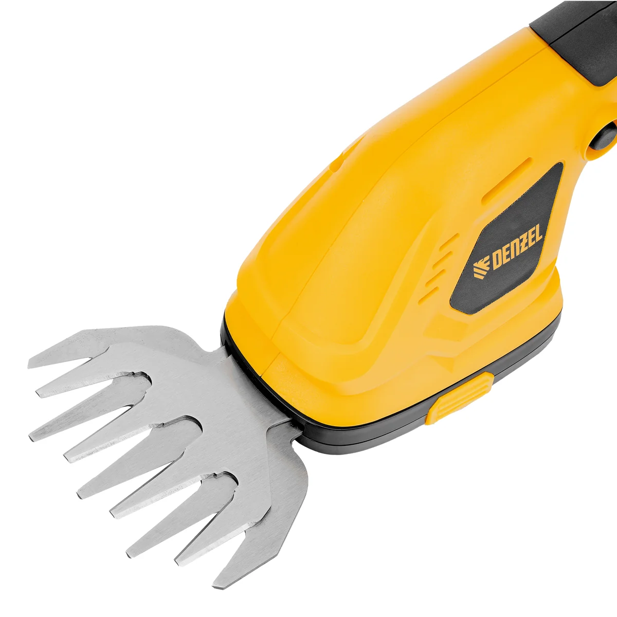 Аккумуляторные ножницы-кусторез Denzel GS-20 59432 работают от аккумулятора Li-Ion 20 В емкостью 2 А·ч. Предусмотрено 2 режима: ножниц для срезания травы и кустореза для обрезки кустарника, ухода за живой изгородью. Максимальная толщина срезаемых веток составляет 8 мм. Ширина среза в режиме ножниц составляет 100 мм, в режиме кустореза — 200 мм, что позволяет быстро и эффективно справиться с работой. Инструмент предназначен для бытового использования.